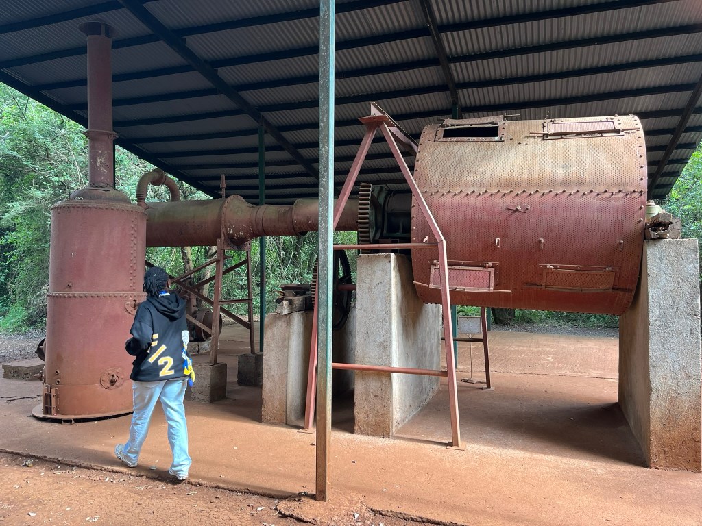 The Karen Blixen museum is her original home in Kenya where she lived from 1914 to 1931. And it was used to film some of the film adaption of her most famous book – Out of Africa. You couldn’t take photos inside the house which was a shame as it was really well restored. The walls were dark panels of wood and the furniture the same. Some of the animal skin rugs on the floor still had the head of the animal attached! And even more shockingly one of the nightstands in the bedroom was the entire foot of an elephant! Behind the house, they still had the old coffee plantation machinery that had been used 100 years ago to grow coffee that was then processed, sent to Mombasa and then onwards to the coffee cups of England.