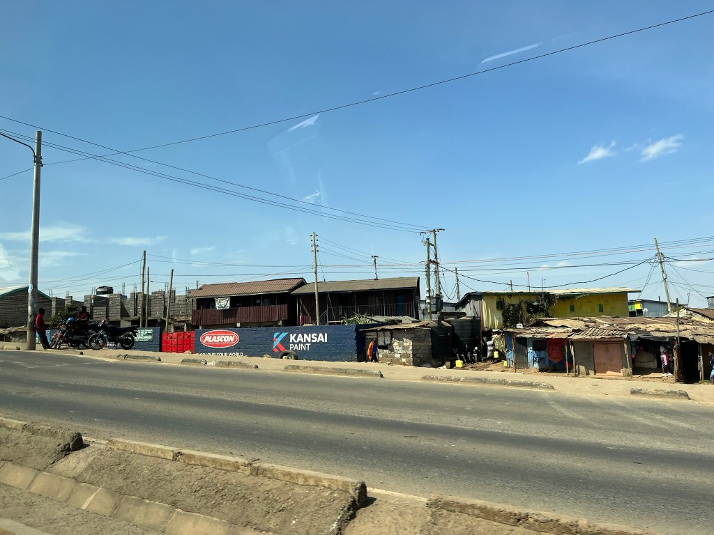 My first impressions of Nairobi as we set off on our day trip to visit 3 key sites in the city (the Karen Blixen museum, the Sheldrick Elephant Orphanage and the Giraffe Conservation Center) were that it seemed very pleasant. Traffic was flowing and there was a vibe of calm chaos. Motorbikes were weaving in an out of traffic and folks were off to work on buses each individually painted to what I assume was the bus drivers individual preference. But there wasn’t as much honking as you would expect and everything felt relaxed. The most interesting part of the drive (and I’m annoyed I didn’t take a photo!) was along one part of the highway where it felt like an open-air shopping center. Initially I saw folks selling plants and plant pots and other garden paraphernalia. And I thought – that makes sense – your heading home and you pick up some plants. But then the range of retail expanded rapidly. There were metal work sellers with 10-foot high metal giraffes for sale. Entire playground swing sets. And then what I thought was best of all – entire living room set ups! Under thin tarpaulins there were hundreds of 3-piece sofa sets for sale.