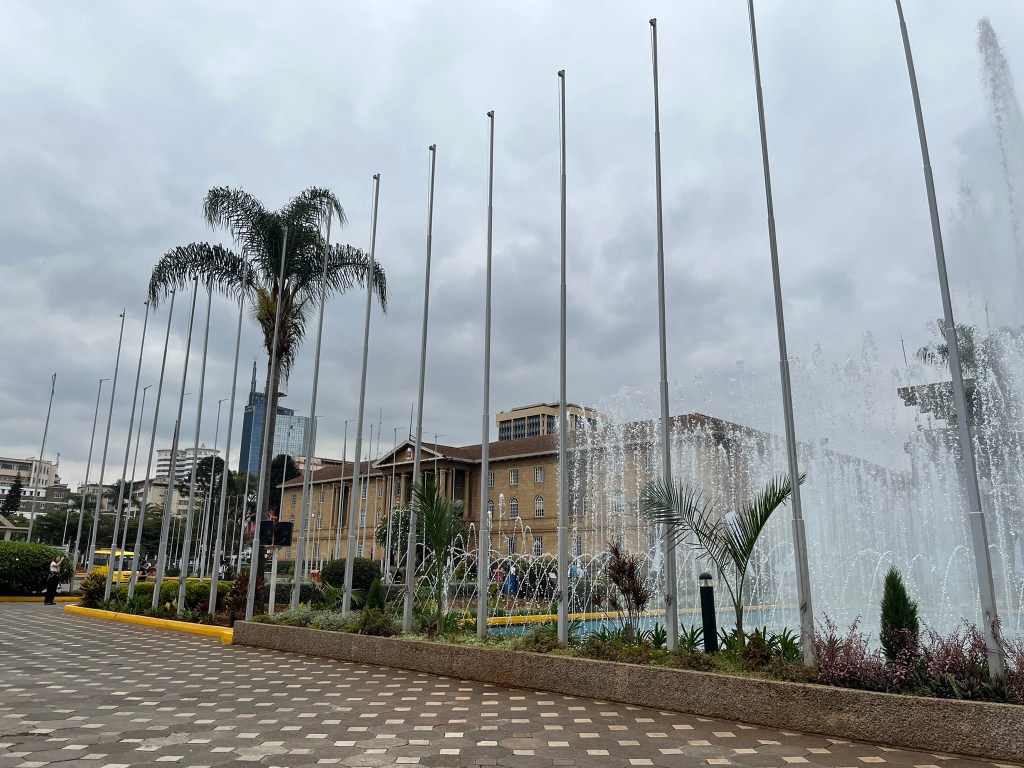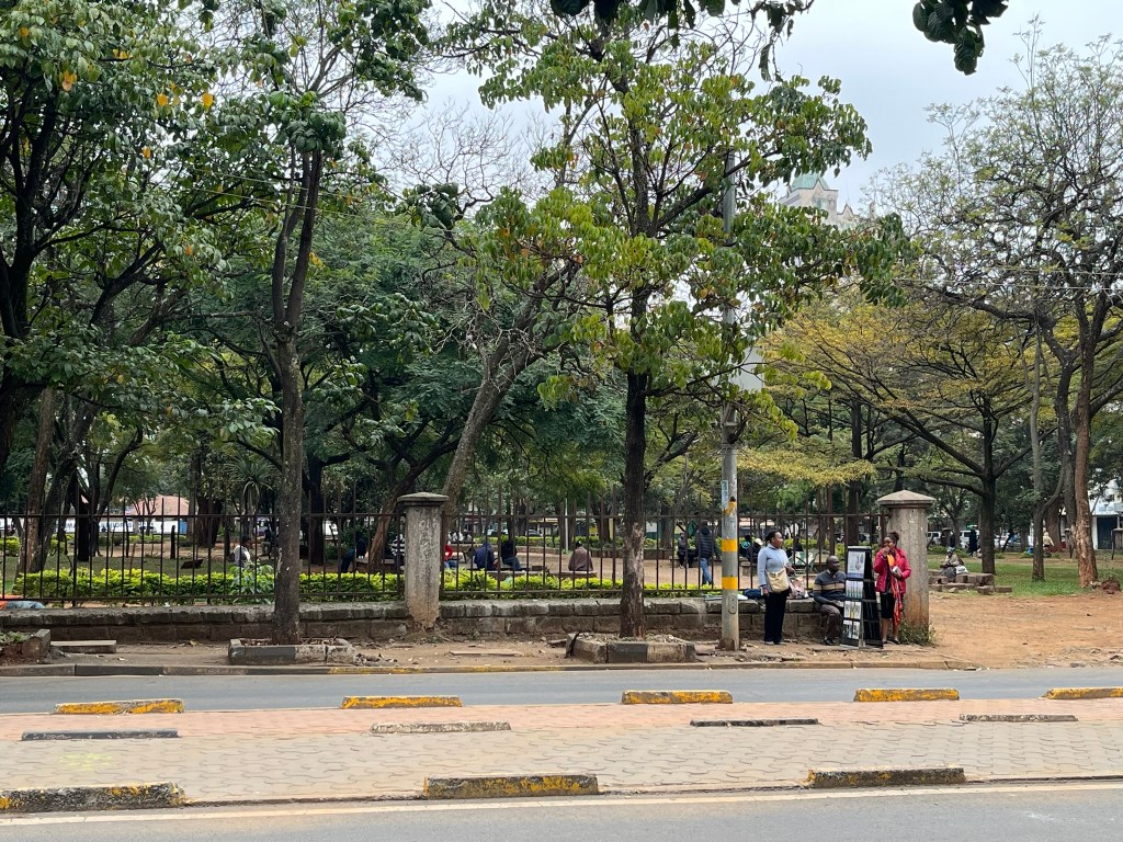 Our first stop on the walking tour was Jeevanjee Gardens, situated in the Central Business District. On the side of the park we were standing was uptown and at the other end of the garden was downtown, which our guide said was extremely busy and not as safe for tourists in terms of pickpockets and the like, and we wouldn’t visit today. Jeevanjee gardens was built by a Karachi-born merchant and one of the early Indian settlers in Kenya. He is the person the British turned to when they started to build the Uganda railway to bring in skilled Indian laborers to participate in its construction. And later he built the park as a gift to the city of Nairobi.