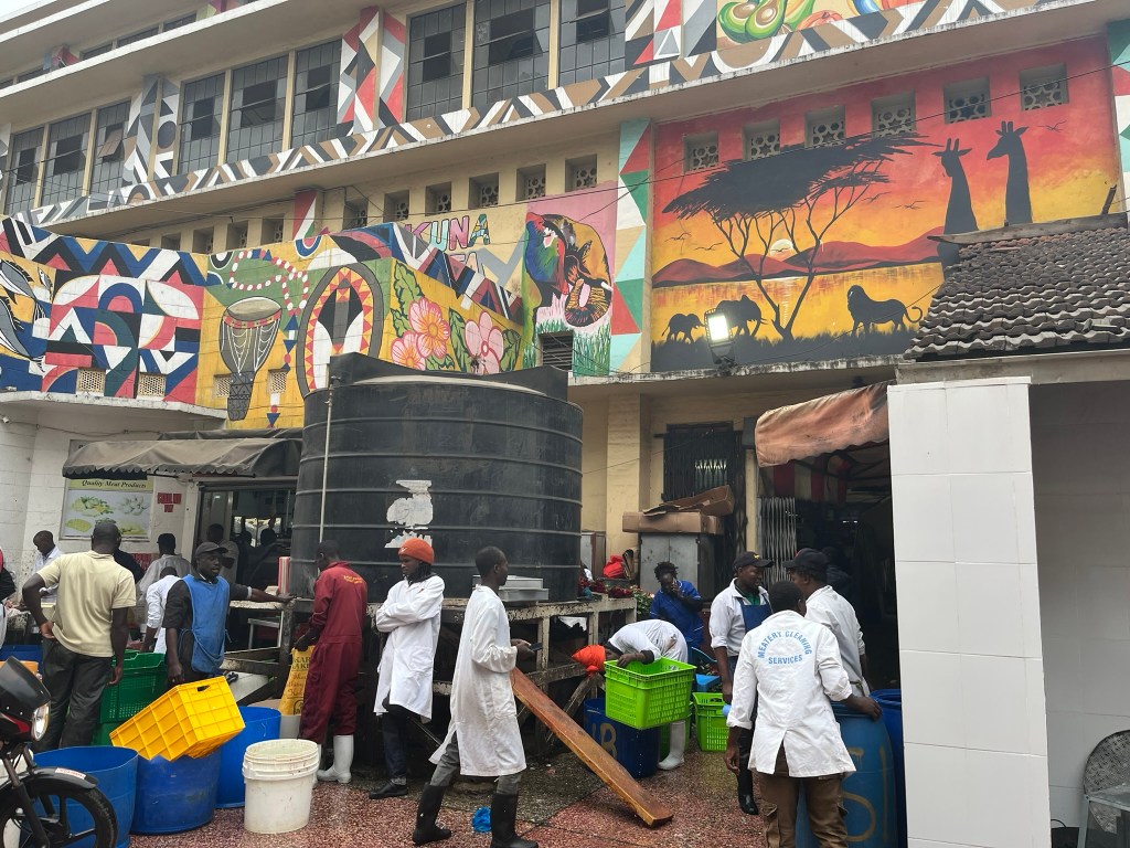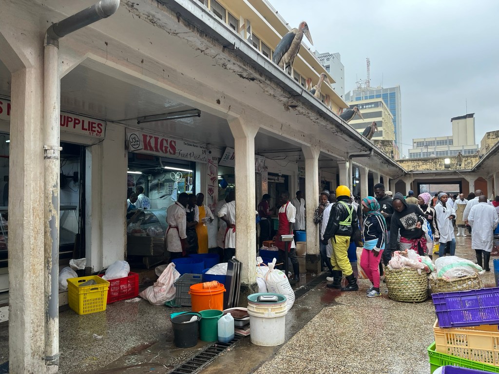He also built the city market across the street from the Gardens. Apparently it was torn down at some stage by the British who didn’t like how powerful and popular Indian merchants were becoming in Kenya. But it has since been rebuilt and acts as a great window into the daily life of local trades people. Before we entered, our guide had said to try and spot the Maribou storks, which totally confused me and I assumed I must have misunderstood what he had said. The entrance to the meat market opens up to a court yard with sellers on each side preparing meat for sale. And as I looked across the court yard I realised that above us something was watching the whole scene unfold. Maribou storks sat on the edge of the roof peering down in the hope of stealing something to eat. These birds are huuuuuge and incredible ugly (they are part of the ‘ugly five’ on a safari) and look incredibly menacing. I’ve never seen anything like it!