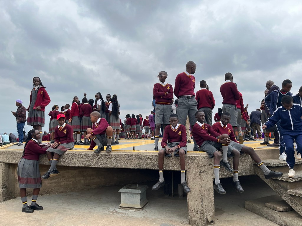 After passing the Supreme Court and the City Council buildings we arrived at our last stop – KICC (Kenya International Convention Centre). It was near the end of school term, so we joined a huge number of school children visiting from outside of Nairobi to travel up to the top of the tower and have a great view of the city. From here we could see the parliament and senate buildings, the old US embassy which was bombed in 1998 and subsequently moved into the suburbs, and downtown with its grid-lock traffic (even so high up you could see how busy with people it was). Nairobi is quite a compact city and the tall buildings very quickly taper off, with huge swathes of forest and grass land stretching beyond the city limits. Just like every city there were more desirable and less desirable areas to live in. Typically a month’s rent in the good part of town (near my hotel) would be roughly $500 USD which is a huge amount for a regular Kenyan. The preference now is to move further out into the suburbs where rent is cheaper and you get the benefit of being closer to nature.