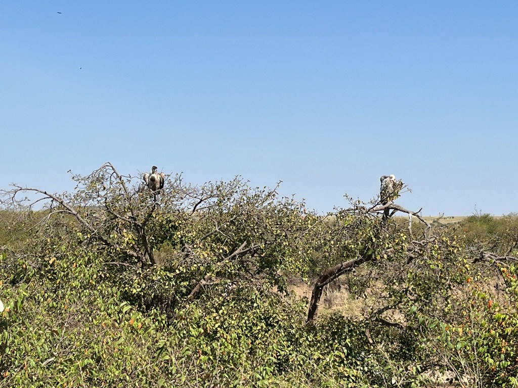 Lets start with the birds. Vultures are the most prominent scavenger and are quick to arrive on the scene of a kill, with their sharp eyesight able to spot a kill from kilometers away. You can usually see them gathering in trees or circling in the air near a kill site waiting for the predator to leave. This means you can often spot a potential kill site on safari by watching where the vultures are heading.