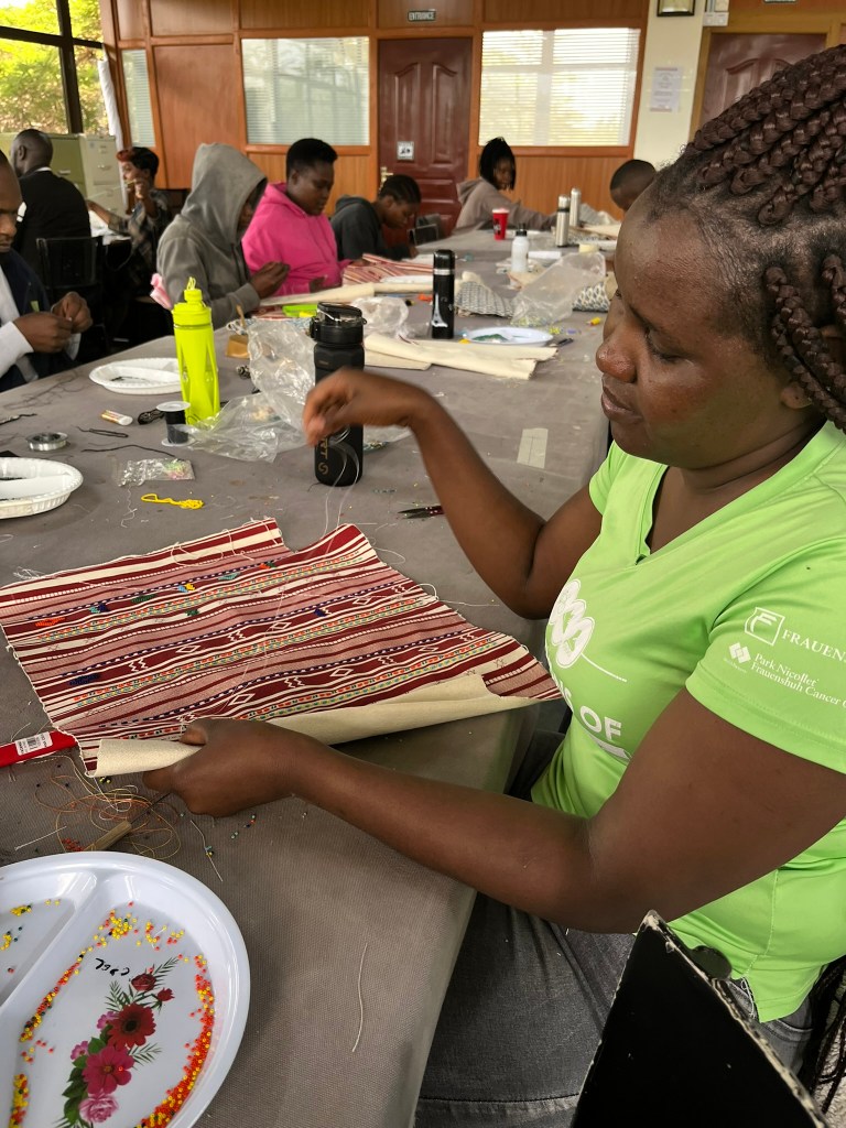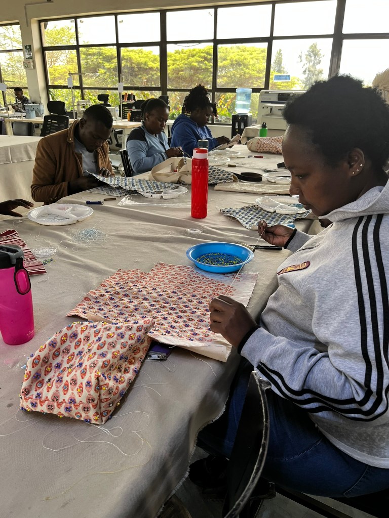 The individuals are trained to use professional sewing machines and they now have over 150 employees producing beautiful and high quality products. They have their own material printing machines and use organic ink as well as their own leather cutting machine. The products they produce include shoes similar to ‘Tom’s’, intricate bead work and beautifully patterned and beaded bags. And the quality is top notch.