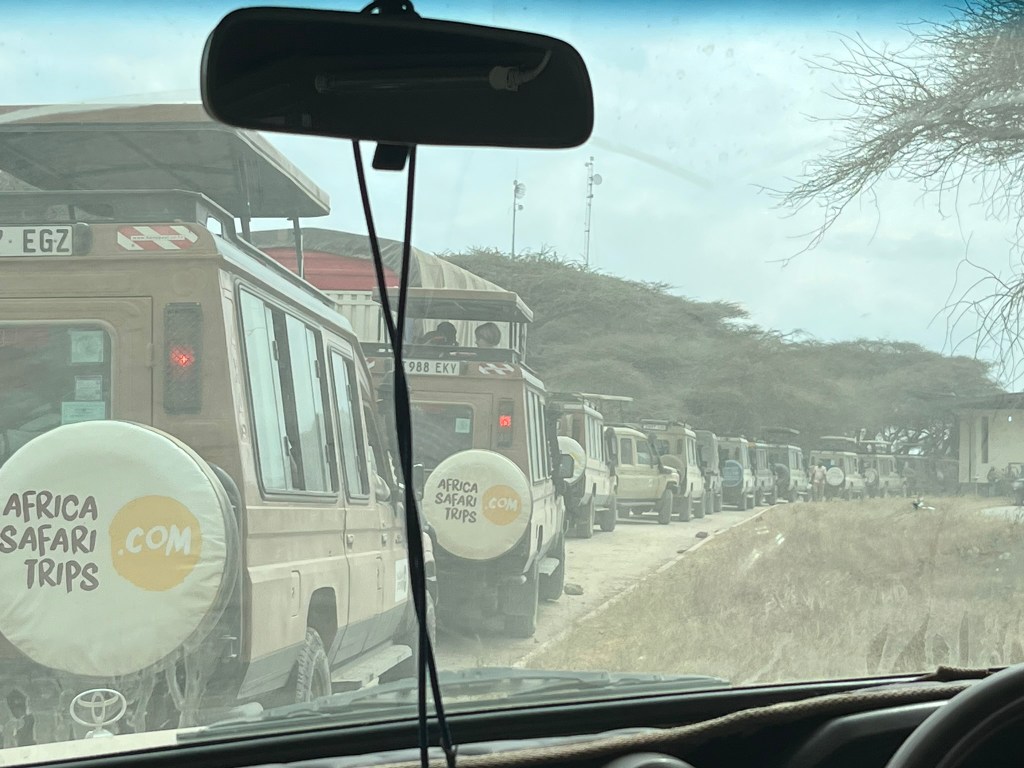 Once you are down on the flat area you need about an hour to get the gate that divide’s Ngorongoro Conservation area and the Serengeti. There are some nice signs welcoming you to the parks so it’s worth a quick stop to take photos. Thirty minutes later you will arrive at the main gate for the Serengeti National Park where you meet up with convoys of other land cruisers entering and exiting the park. You need 20-30 minutes here for the driver to do the paper work for permission to enter the park so it makes a good toilet and coffee stop. During peak season there will be 100’s of vehicles parked up waiting to enter. But don’t worry, once you are in the park, everyone disperses pretty quickly.