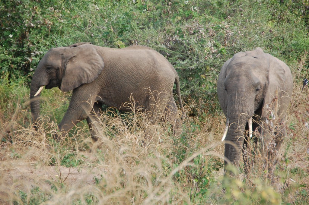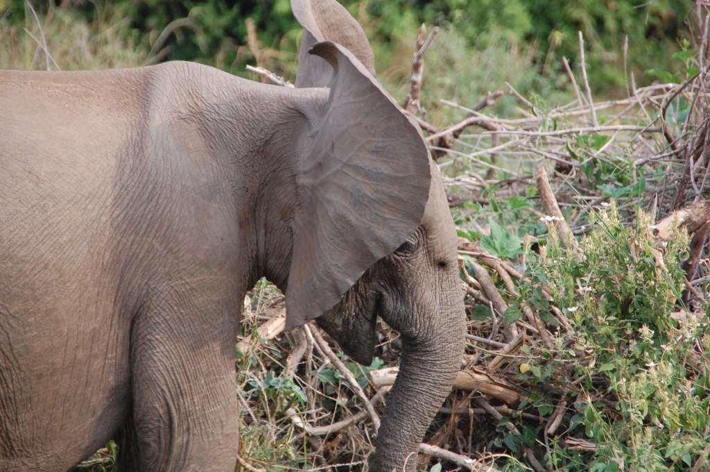 Even though the park is changing we still saw a lot – big troops of baboons and smaller clusters of Vervet monkeys. Water bucks, gazelles, zebra and water buffalo. And a parade of elephants. The elephants in this park are actually a sub-species of the African elephant as the more forested environment means they have adapted by becoming a little smaller and thinner than those you see in the Savannah. We stopped to watch the elephants we spotted for about 15 minutes and it was fascinating to see how they flapped their ears so widely as a way to cool themselves down. Initially we only saw a baby and a juvenile but we knew the mother wouldn’t be too far off and was likely just a few bushes away. We spotted her about 5 minutes later as we drove down the road and she was on her way back to her family.
