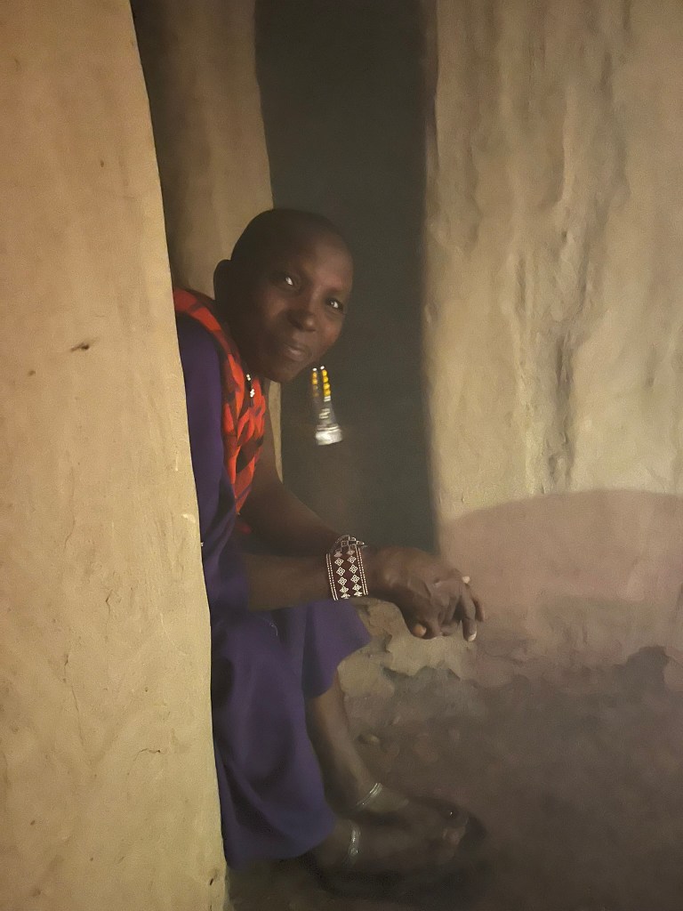 We visited a boma hut where 4 ladies were constructing a new stove and then another hut where one was now completed and the fire running. The difference in the smoke level was tremendous and you could immediately tell the benefit. It also uses less fire wood, as the system has much more efficient energy usage so that is an added benefit. The project is also now expanding to the provision of solar panels to improve lighting within the boma huts.