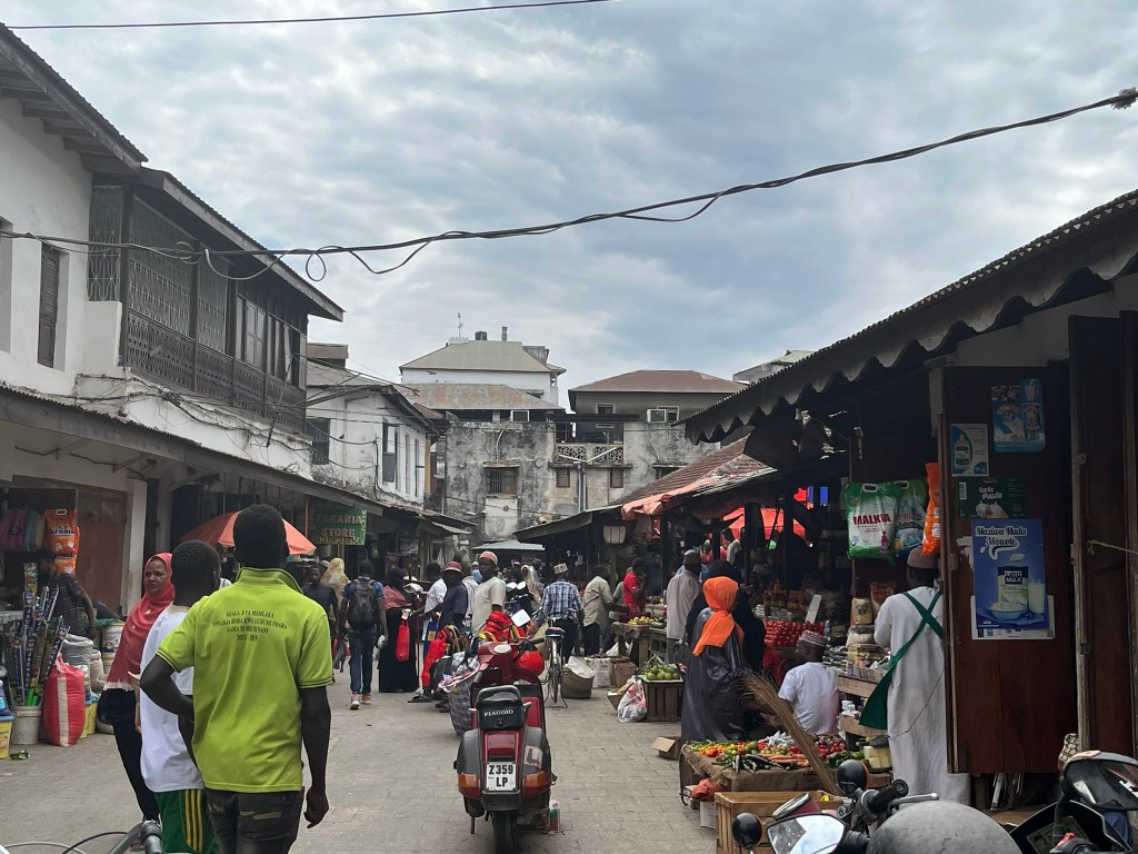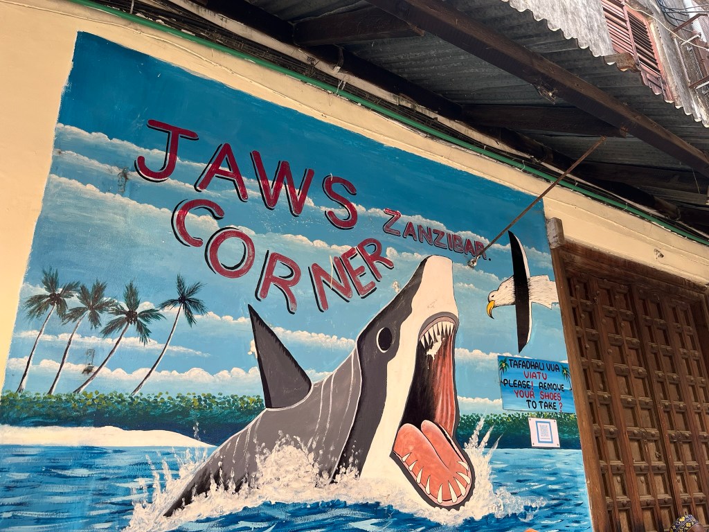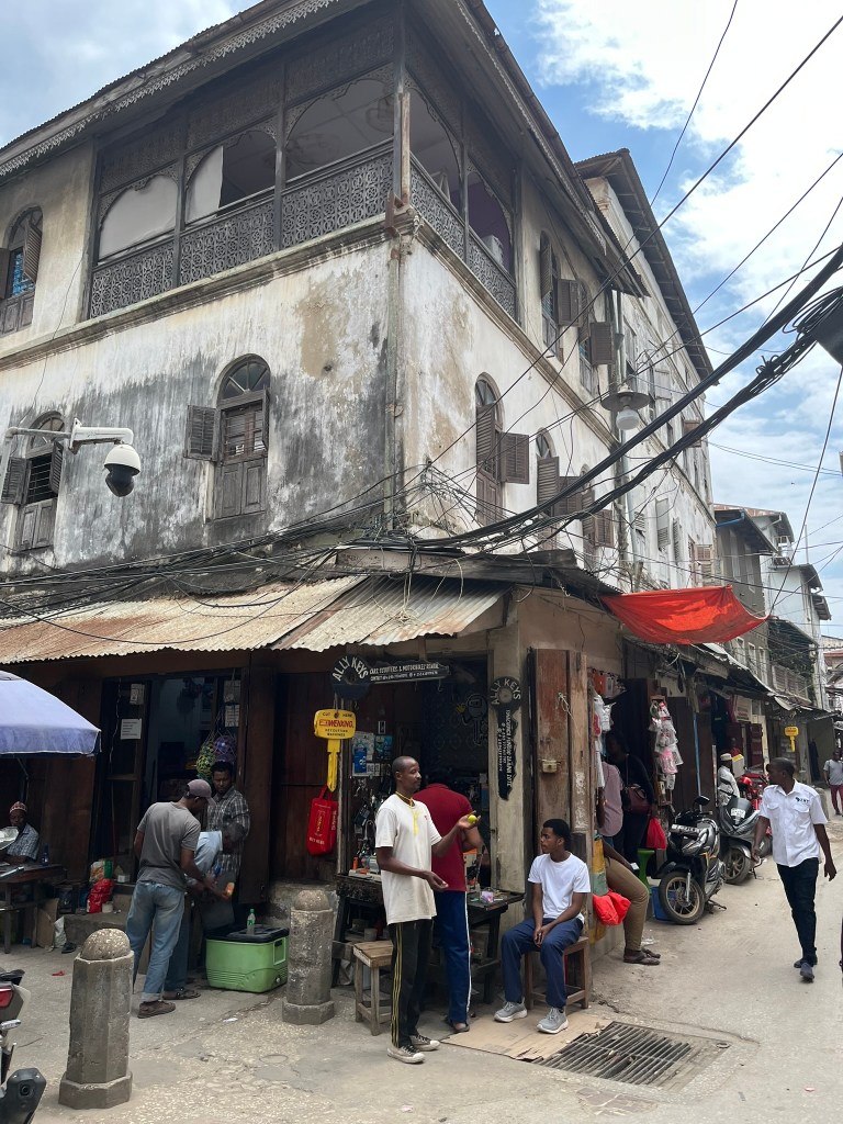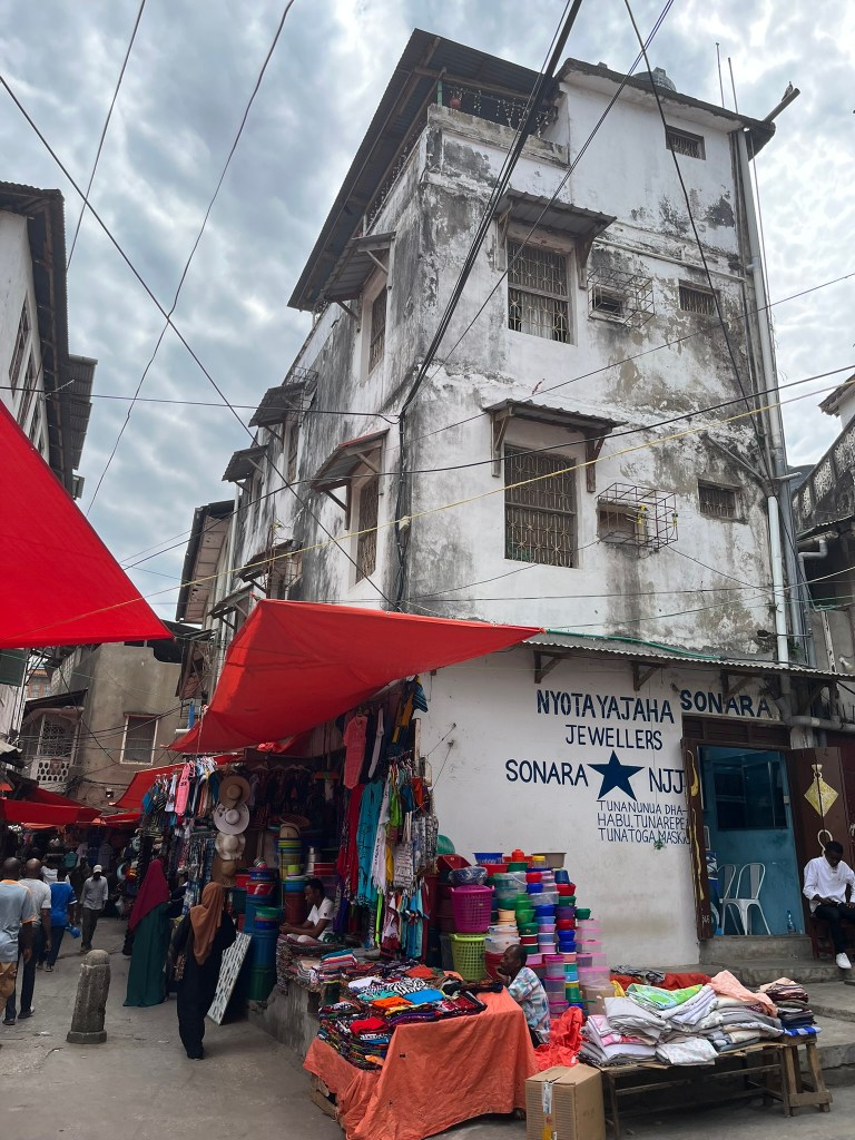 On our way to Darajani Market we stopped at Jaws Corner, in the heart of the Kiponda neighborhood. This is a small meeting point for locals to have a traditional spiced coffee, play dominoes, gossip and debate and catch up on local news via a blackboard, shaded by trees and surrounding by looming coral stone houses. It was one of the first places to have a TV in the town, so locals flocked here to watch movies each evening. And this is where the bizarre name of this spot came from. Apparently the choice of movie one night was Jaws and it terrified the locals! This is a place for locals and not staged for tourists.