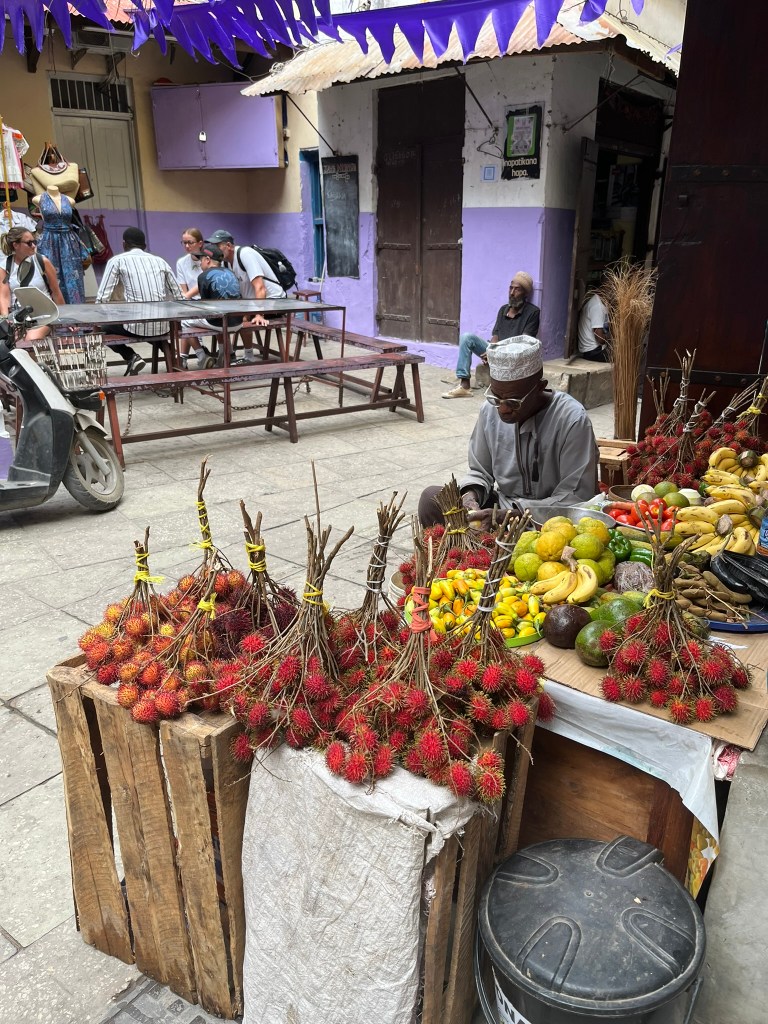 Darajani market, built in 1904 by the British sits at the transition between Stone Town and Ng’ambo (‘the new town’). The road that divides the 2 parts of this city used to be home to a mangrove swamp and tidal inlet but this was drained and filled in to allow the city to expand in the late 19th century. The market is huge, busy and still very much used by locals. We wandered through the fish market and fruit and vegetables stalls.