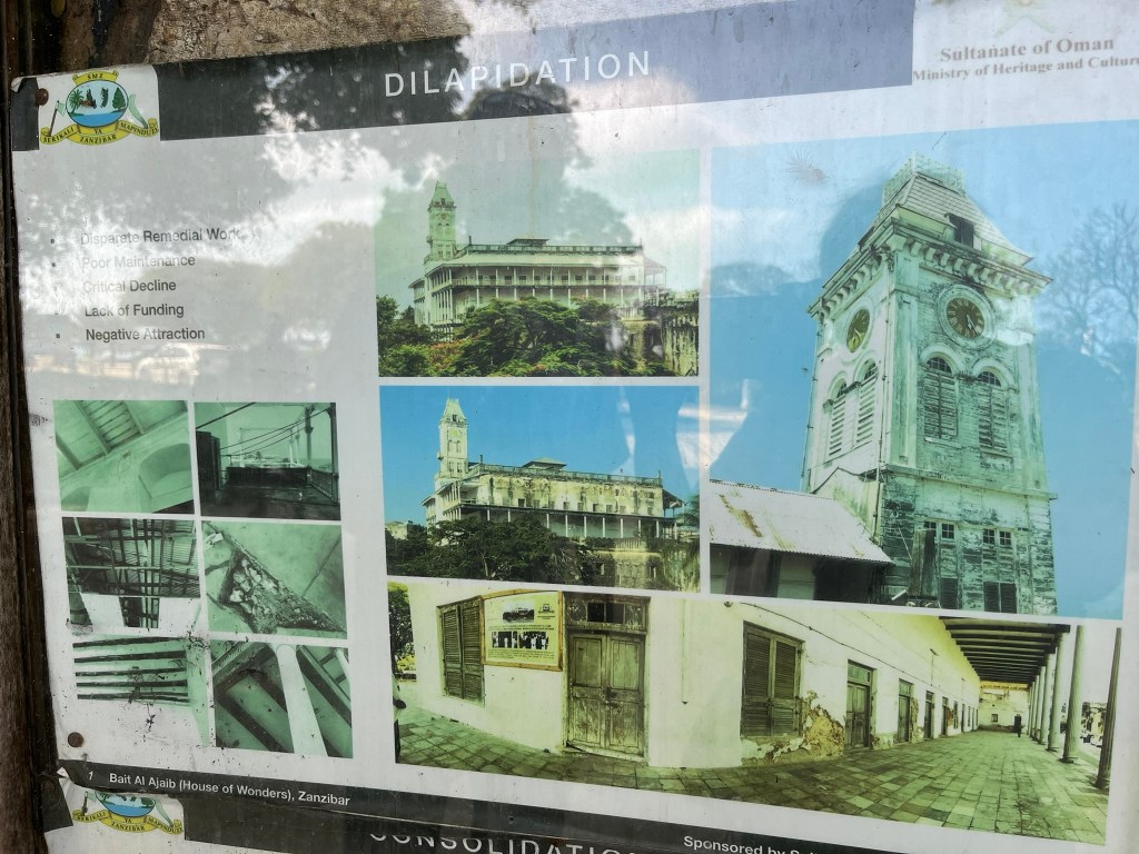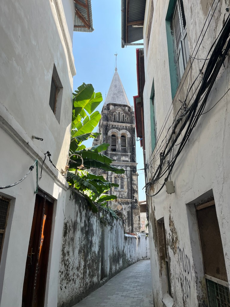 My walking tour on my last day of this trip started at my hotel. Our first stop was Forodhani Gardens, which is right on the seafront in central Stone Town. This is where the original port was based, and for the locals this is the equivalent of their ‘Hyde Park’ and a meeting point within the city. Facing the gardens is the House of Wonders, the palace of Sultan Barghash until 1888 and full of modern technology at the time like electric lighting, running water and an elevator. It was also built with iron and steel beams which was a very new technology for the time. Making it something mysterious and exciting for Zanzibari people back then. It is currently under major renovation so we could not go inside or really even see the outside as it is heavily covered in scaffolding.