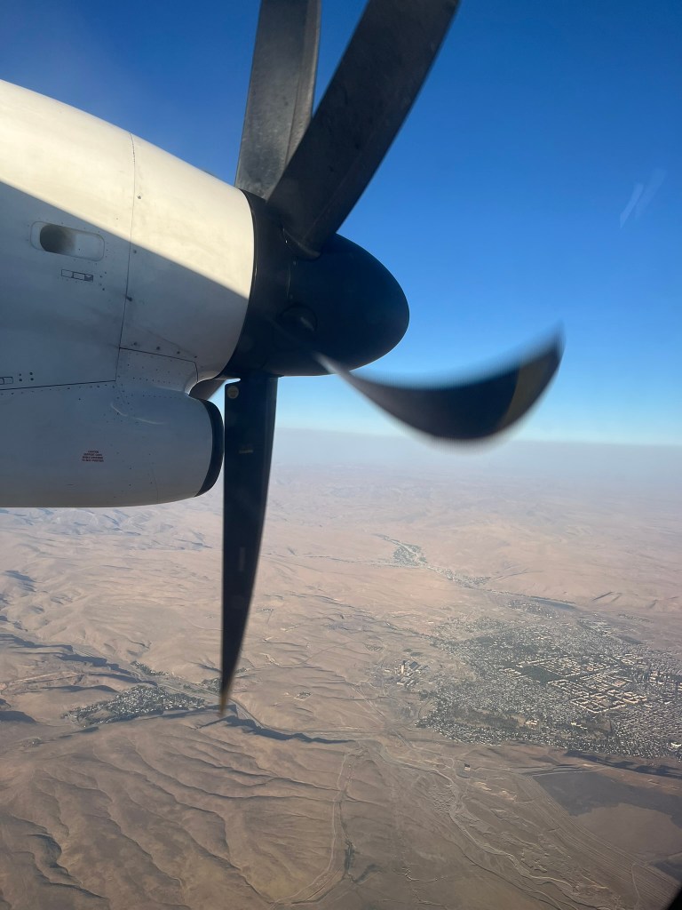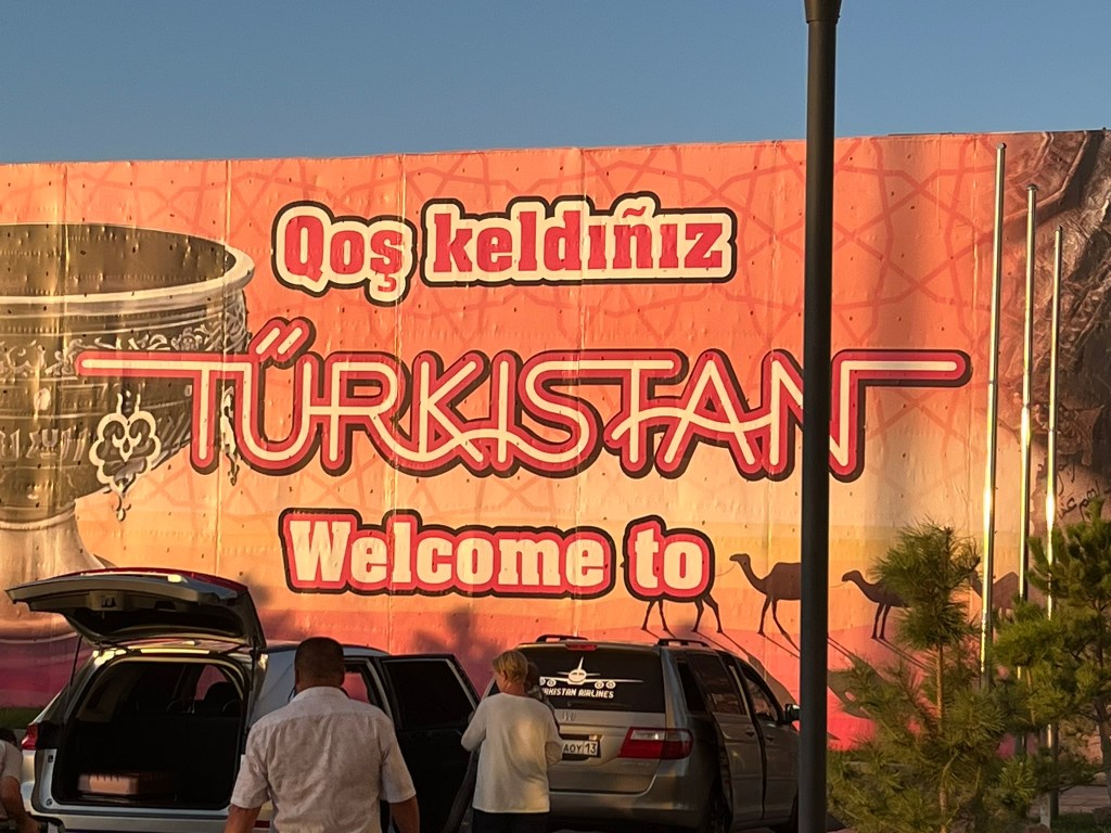 The views from the plane were brilliant. Initially there was endless steppe grassland and then as we approached Turkestan we flew over part of the Tien Shen mountain range which made way for a much more desert-like environment. It is a lot warmer here than in Astana.