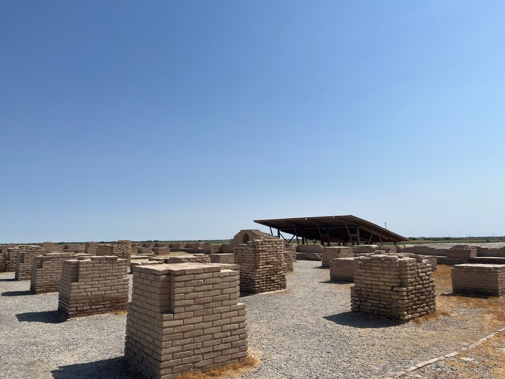 This afternoon we visited the archeological ruins of Otrar, an ancient Silk Road city in southern Kazakhstan. Between the 9th and 12th centuries it was a booming fortress city, successful because of its location at the confluence of the Syr Darya and Arys rivers and a point of convergence for many different caravan routes coming from China, the Middle East, Europe, Siberia and the Urals.