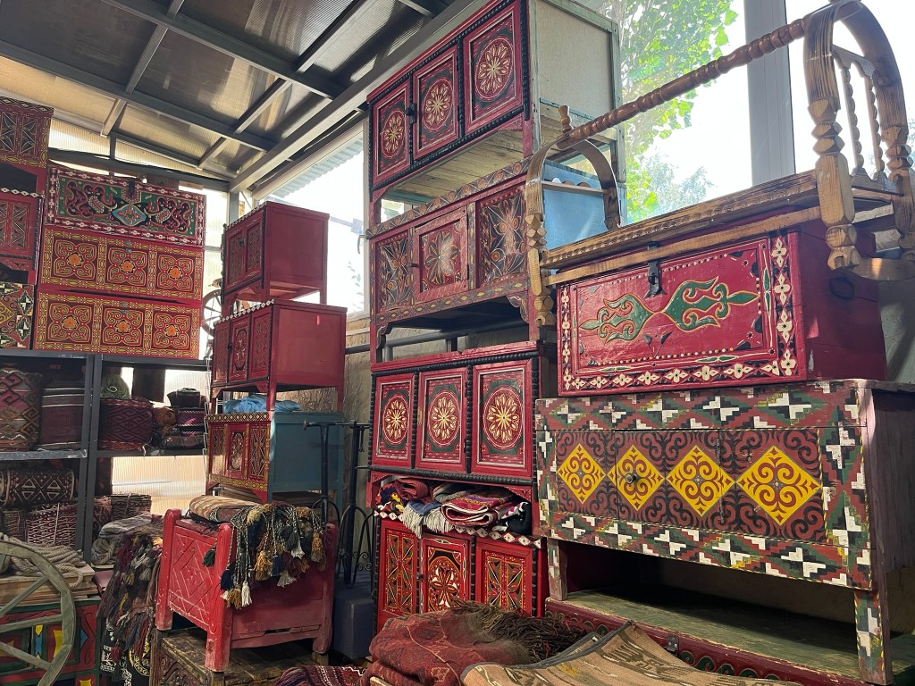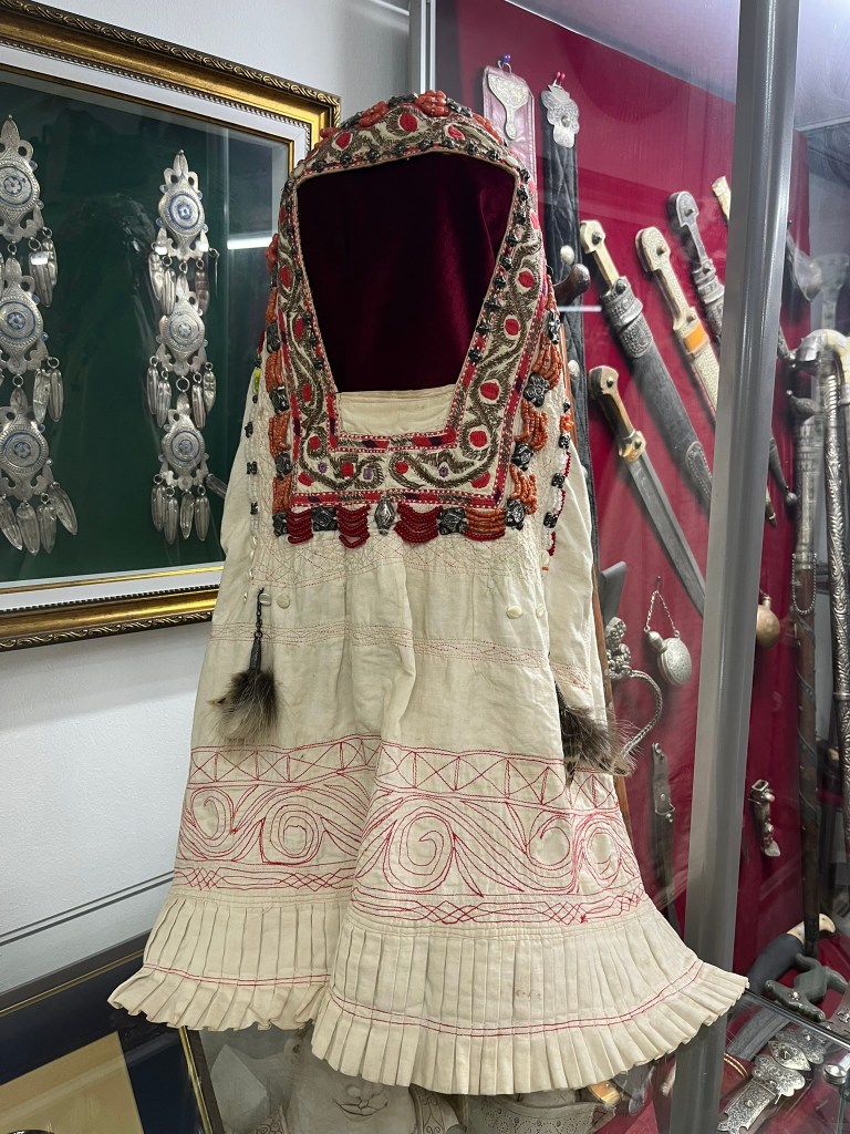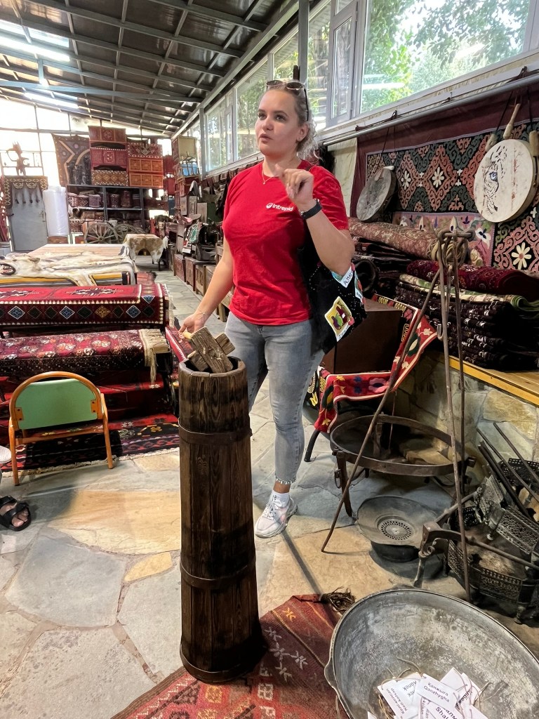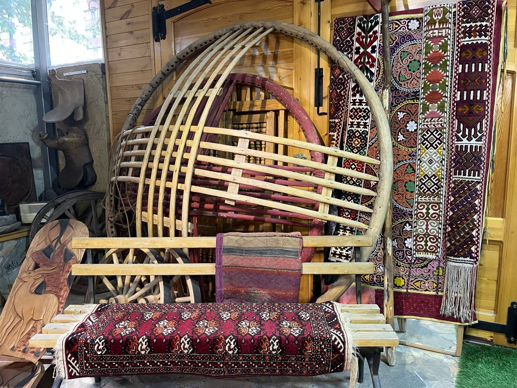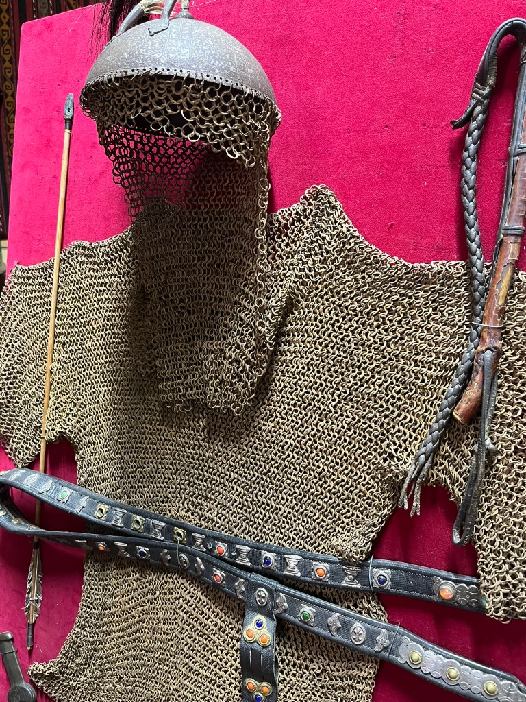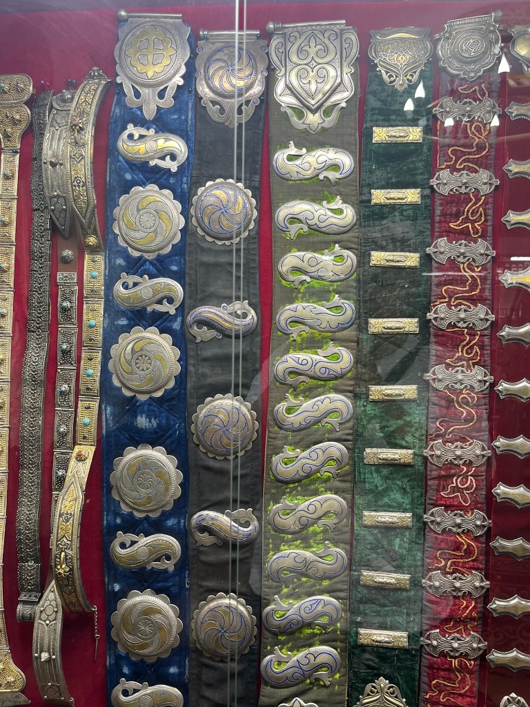 As part of our tour of Astana we visited the museum of a renowned local jeweller called Berik Alibay. Inside his museum he has collected a huge range of historical Kazakh artifacts ranging from typical household items to clothing, jewellery and warrior weapons. Later in the trip we will be staying in traditional yurts so visiting the museum gave our guide an opportunity to introduce us to this traditional way of living.