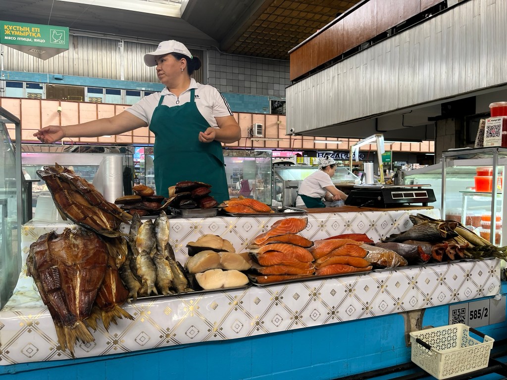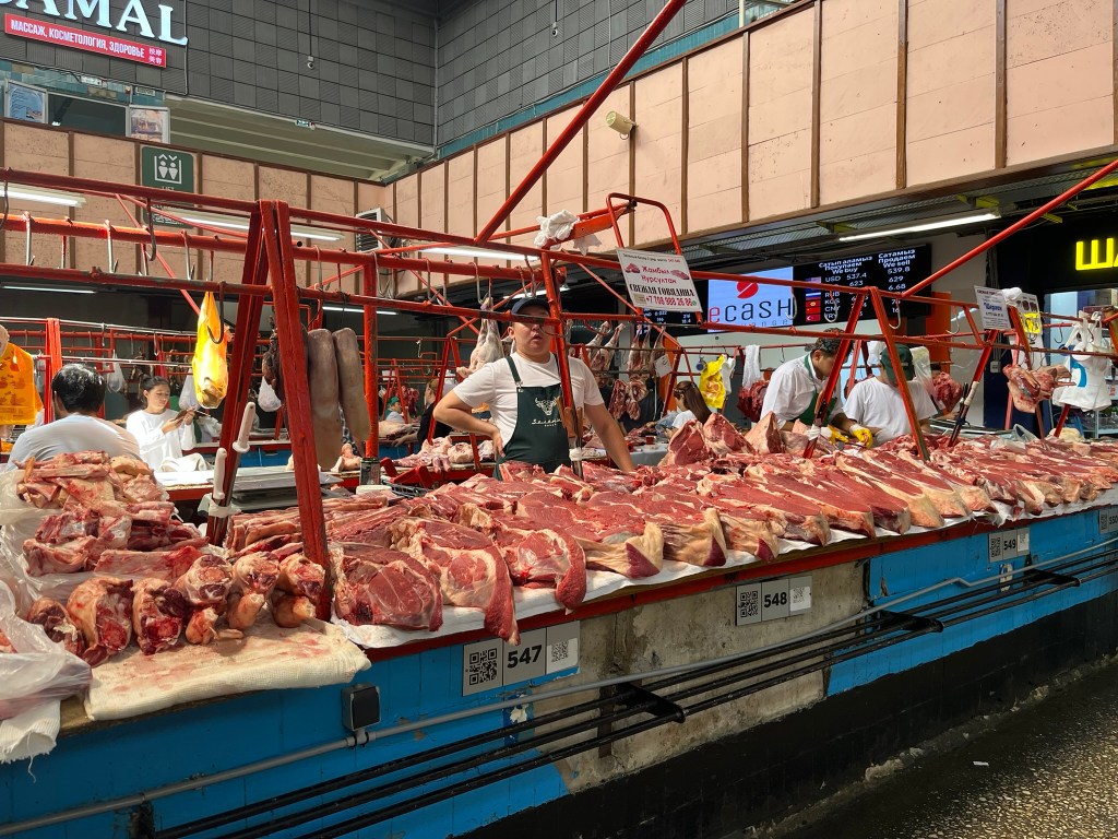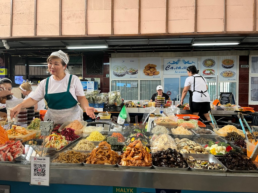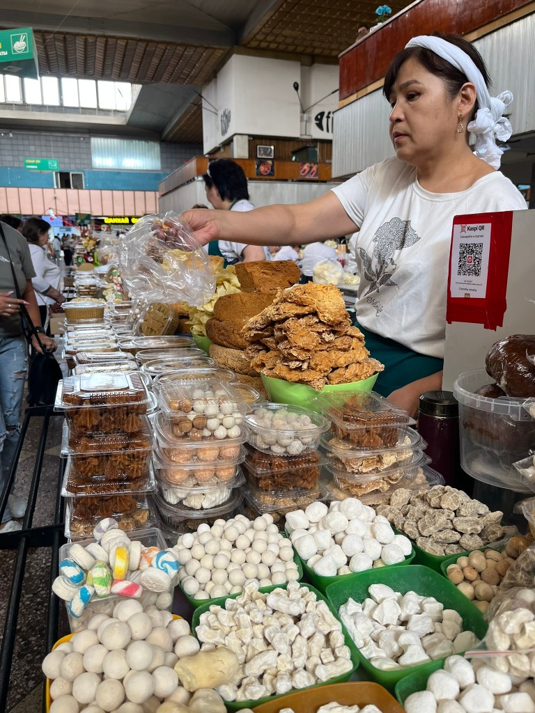 The Green Bazaar is full of locals doing their daily shopping as well as tourists exploring. Unlike other bazaars I have been to in Central Asia, this one had supermarket style trollies and locals were pushing them around buying their goods from seller to seller. It is super clean and the sellers are friendly and happy for you to take a closer look at their stalls. Interestingly there was a big Korean section, as Almaty has a large community of Koreans who have lived here since the Soviet Era.