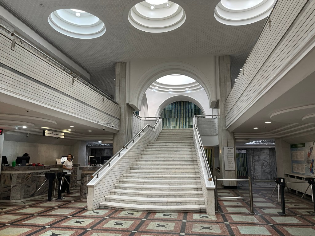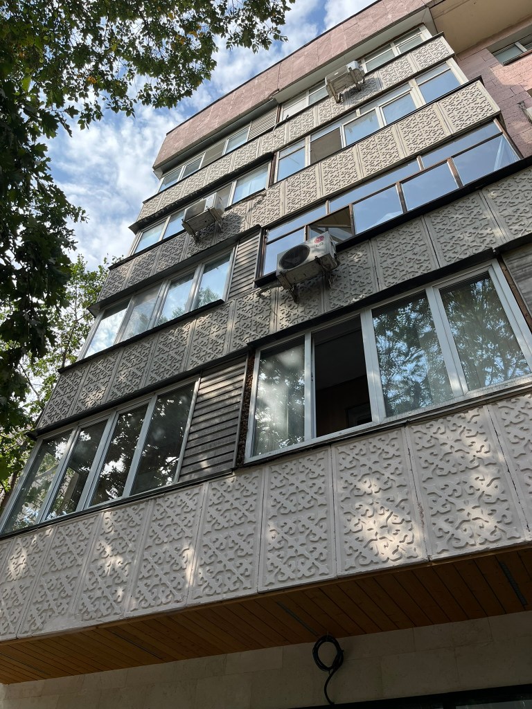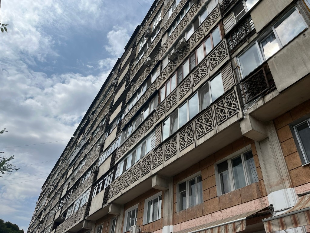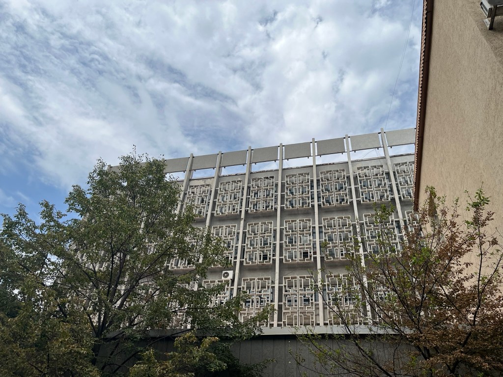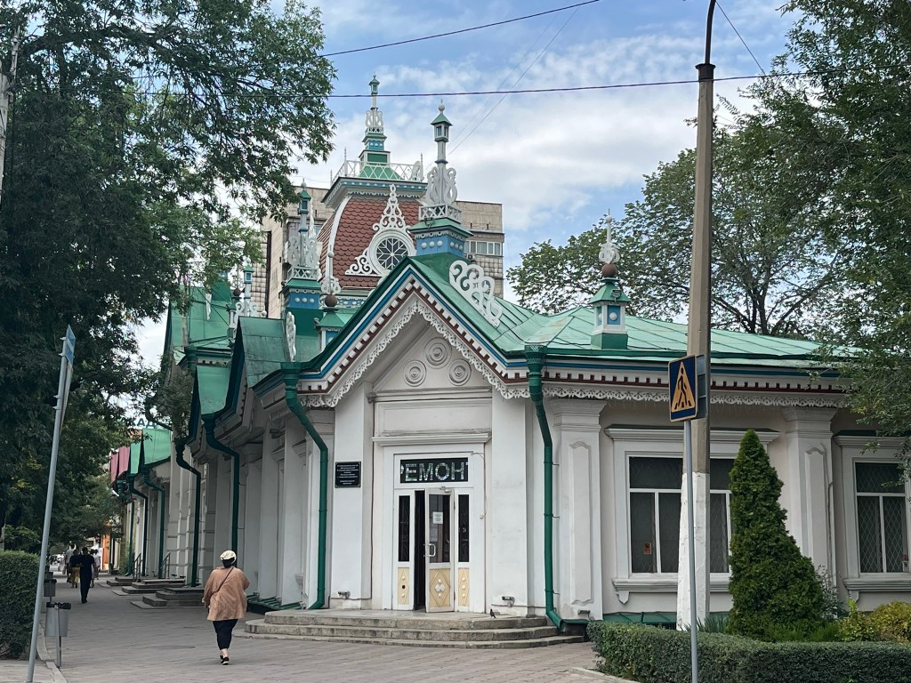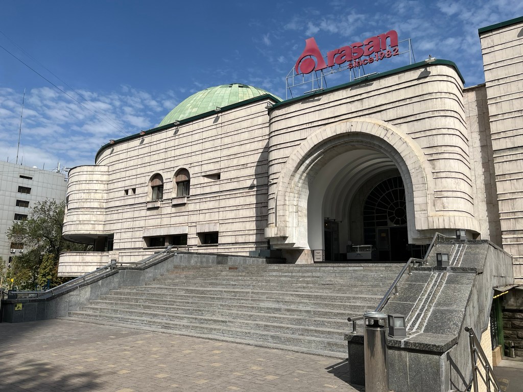 As we left the park and walked towards the Green Bazaar, we passed lots of interesting ex-Soviet apartment buildings, many of which have lovely motifs or designs on the outside that break up their monotonous nature. I enjoyed spotting different styles of building. One particular place we stopped at was the Central Bathhouse, which was built during the Soviet era to cater to the rapidly growing local population, but still remains functional and busy even today. The inside is beautifully decorated in an almost art deco style and the pictures of the pool and sauna looked equally as good.