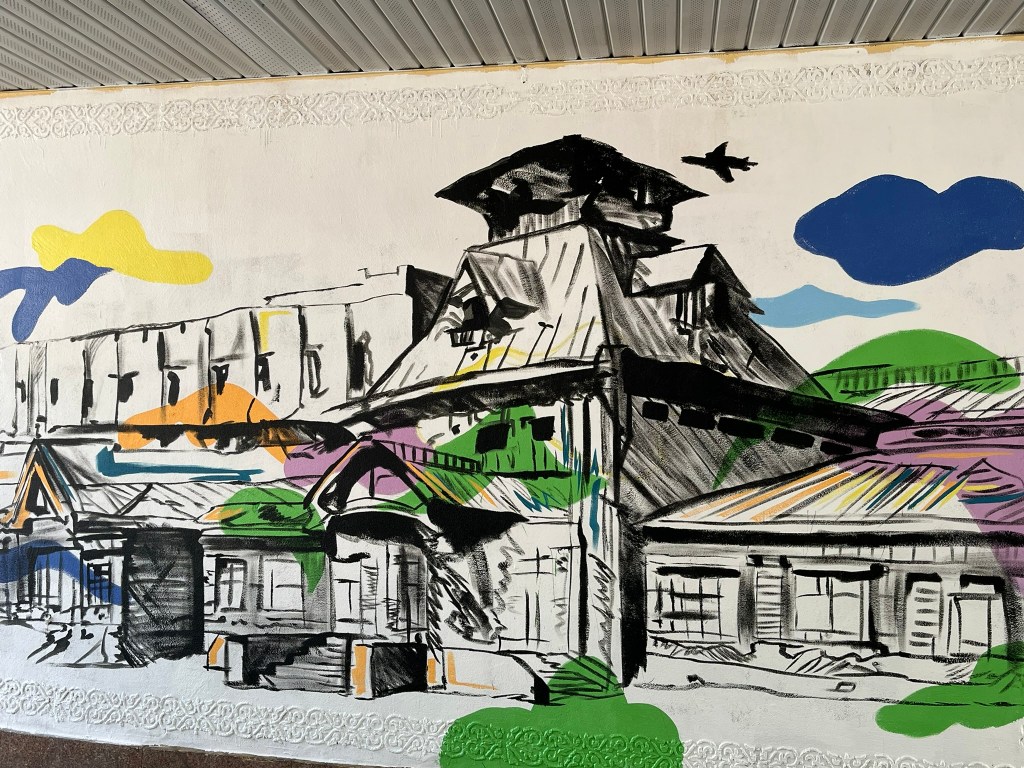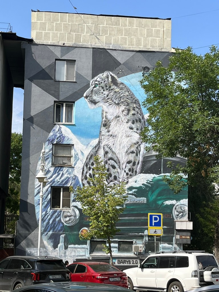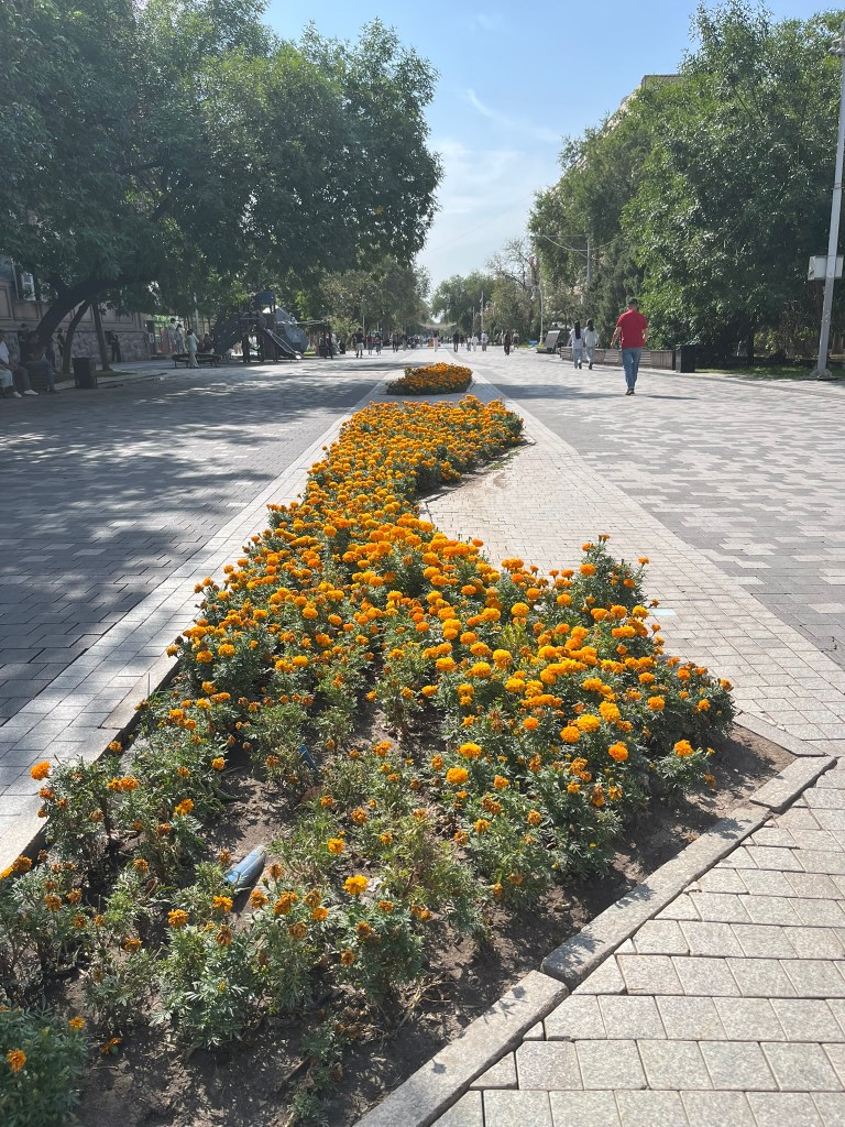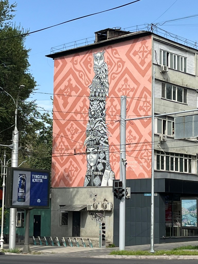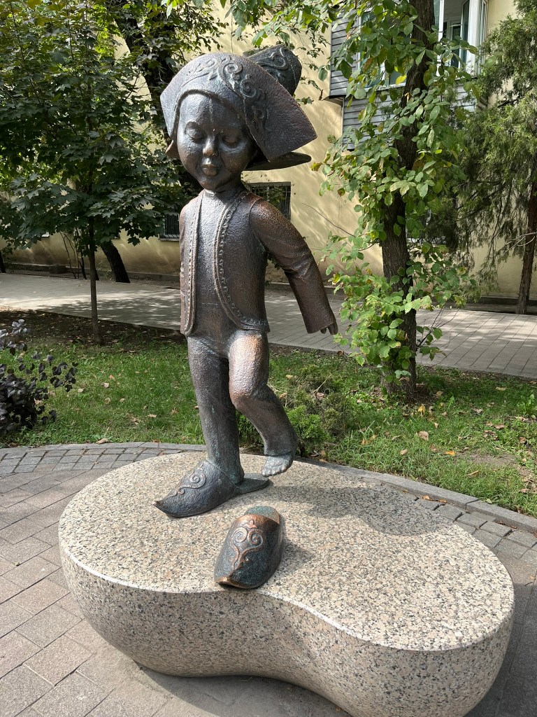 Our final stop was a walk along the pedestrianised Zhibek Zholy Street (translates as Silk Road) but more often referred to as Arbat Street. This is a lively place, with street art, play grounds, water fountains and benches for families to sit at. There are lots of cafes and small vendors and it seems like an important part of city life in Almaty.
