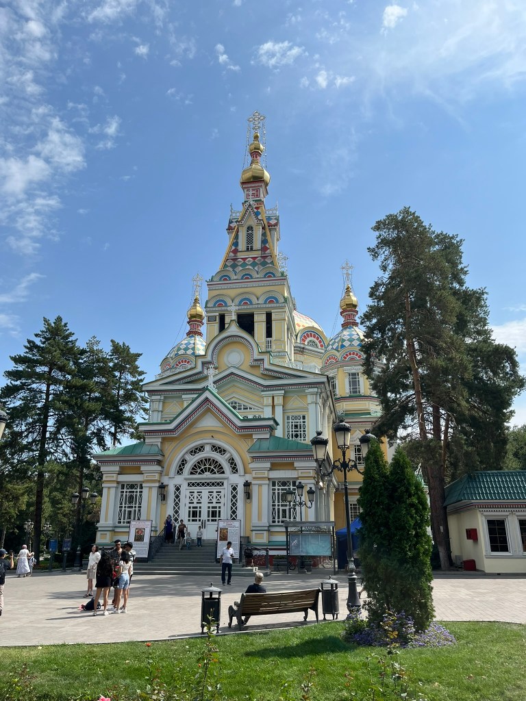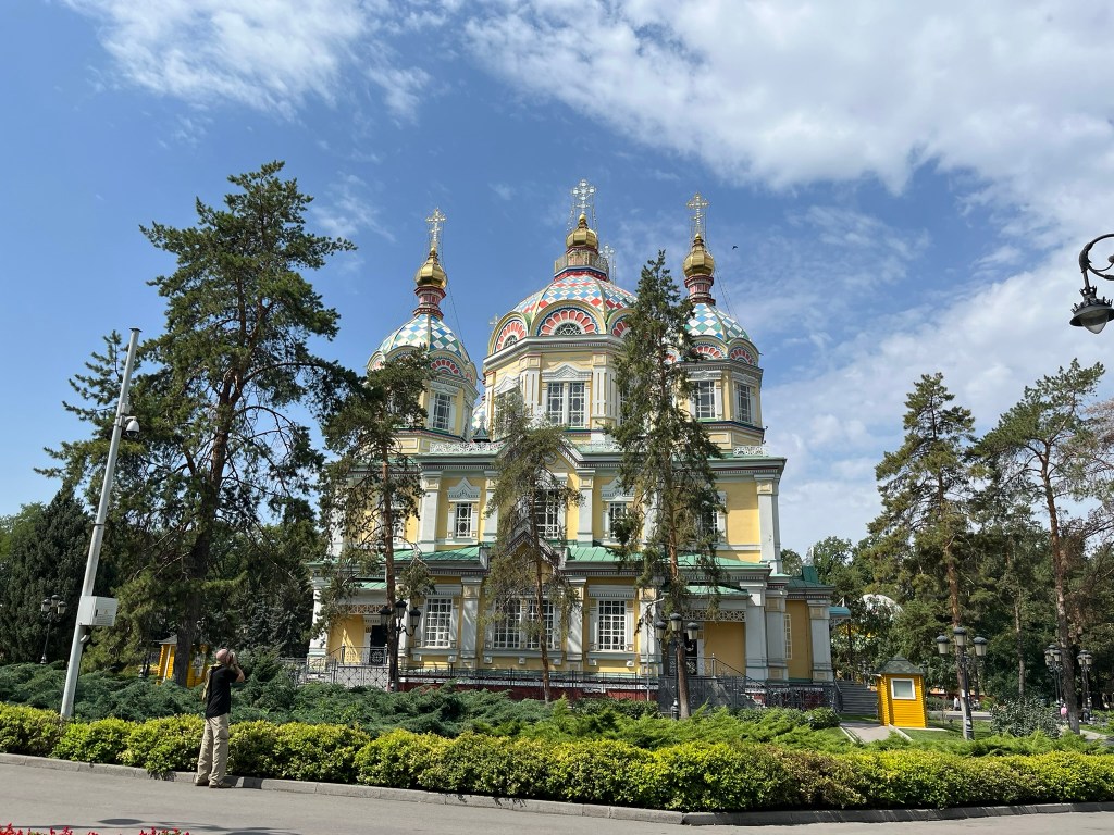 Our final stop in the park was the Zenkov Cathedral. It’s brightly coloured exterior is very striking, and amazingly it is completely wooden. It was built at the turn of the 20th century and survived the large 1911 earthquake, which shows how well wooden buildings can withstand seismic shaking.