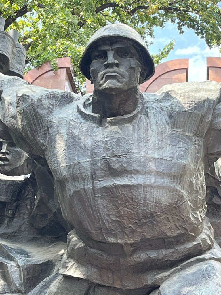 Interestingly, ex-Soviet countries don’t typically refer to WWII, but instead call it the Great Patriotic War. This more specifically references when the USSR entered the war to protect itself, after Nazi Germany invaded USSR in 1941. 28 million USSR citizens lost their lives fighting in this war (compared to 8 million Nazi Germans) and many millions of those people came from Central Asian countries like Kazakhstan. Google tells me that 1.2 million Kazakhs were mobilized out of a population of 6.2 million people (so almost 1 in 5 men went to war) and only 400,000 returned.