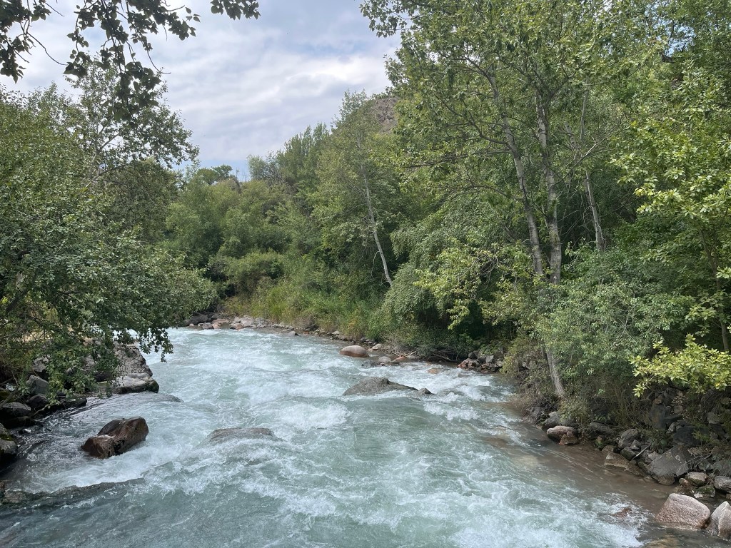 The lake is a stunning blue color, a result of the mineral content and its glacial origins. I did a bit of Googling to better understand how this works and it is caused by something called glacial flour. When glaciers grind against rock beds they generate ultrafine particles like a fine powder. The particles flow down meltwater streams feeding the lake but stay in suspension as they are so light, giving a cloudy appearance. Sunlight hits the lake and the glacial flour scatters the light at shorter wavelengths (blue/green) more strongly that longer wavelengths (red/yellow). The lake was formed 8000 years ago when a massive rock avalanche blocked the Issyk river, creating the natural lake.