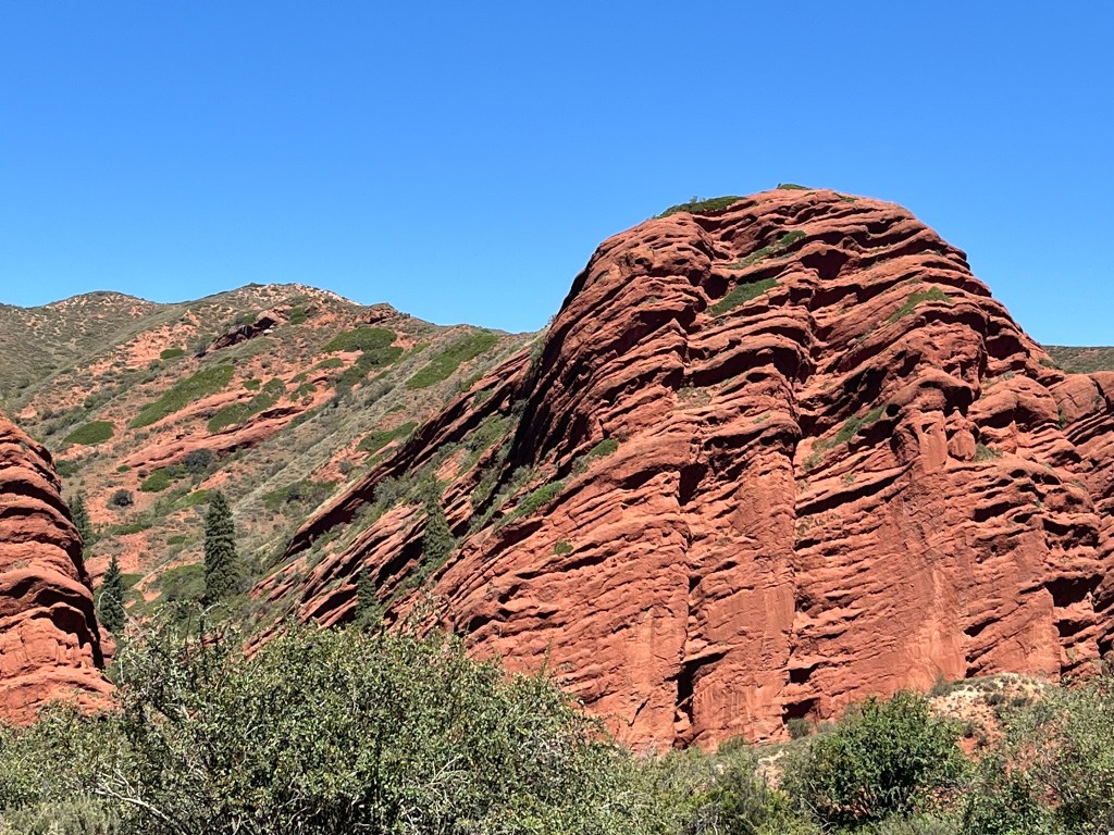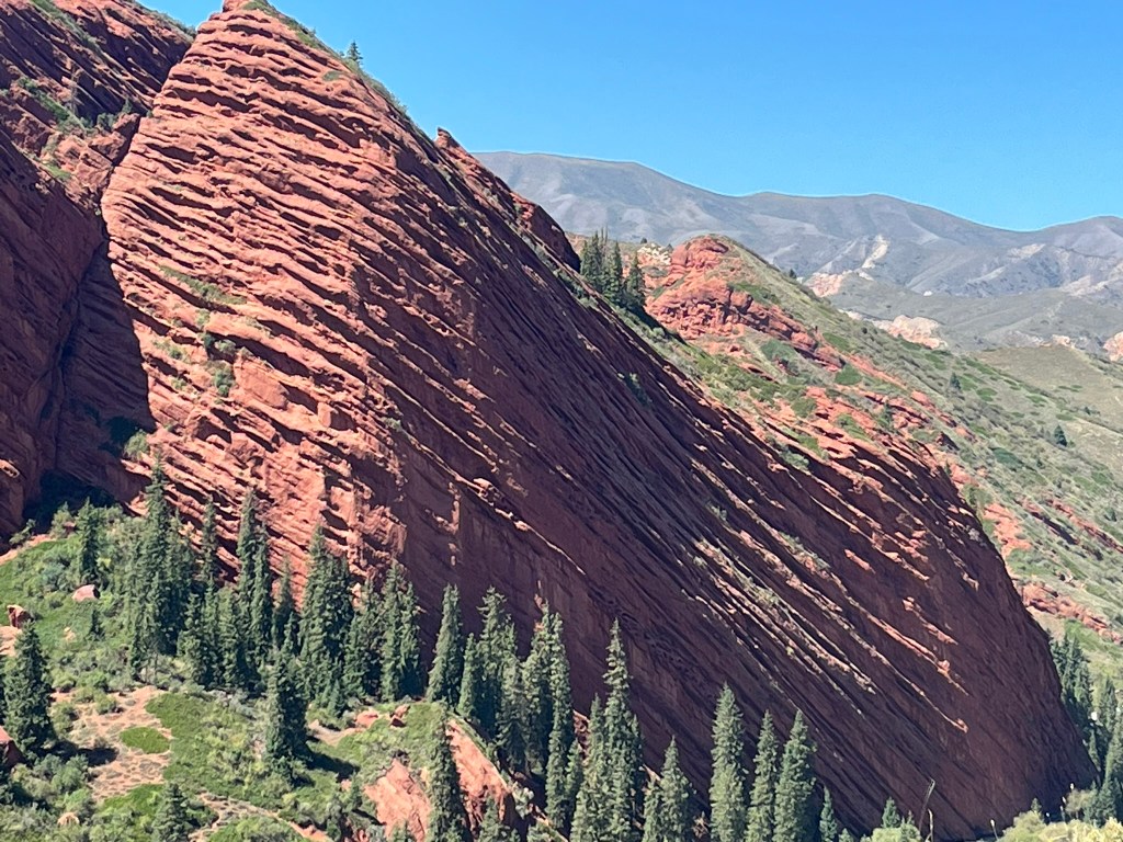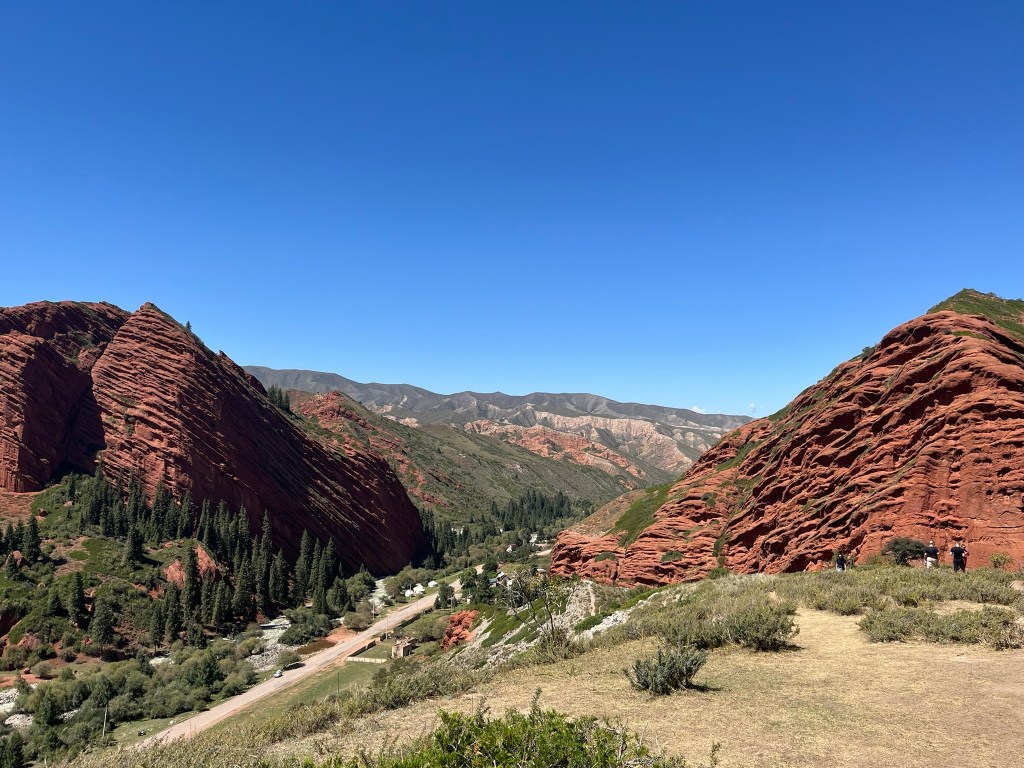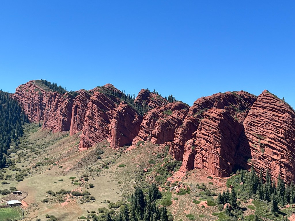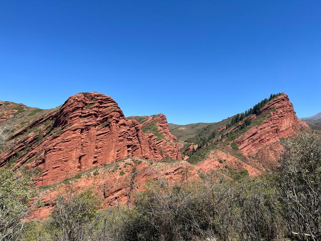 After exploring Karakol we headed into the mountains to enjoy some of the surrounding landscapes. One particularly famous gorge, about 45 minutes drive from town is the Jety-Oguz Gorge. This translates to ‘Seven Bulls’ because of a stunning rock formation of seven huge red sandstone cliffs that some says looks like a group of bulls standing together.