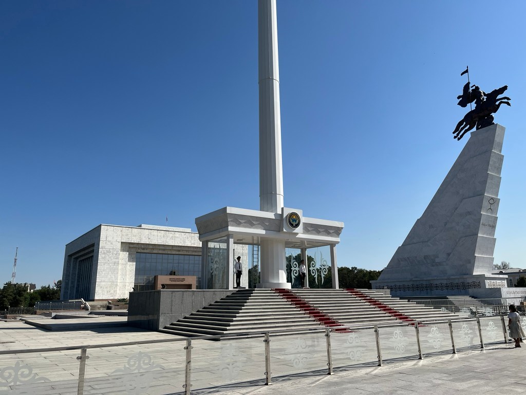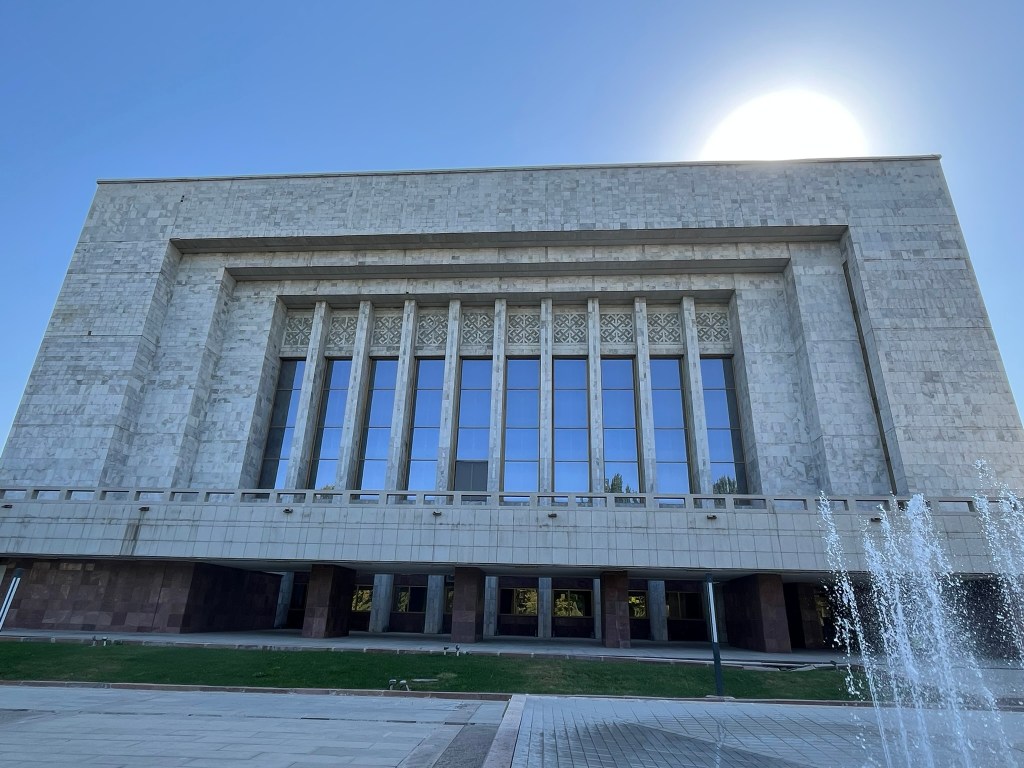 We started our city tour in Aloo-Too Square. One thing that is very easy to see is that Bishkek has kept and maintained a lot of Soviet-style government buildings whereas other capitals in the region have slowly moved away from this architectural style. The square is a huge wide open space surrounded by towering buildings, mostly covered in marble cladding. We saw the Parliament building, the Presidential Administrative Building and the State History Museum. In amongst these monolithic structures there are various statues that commemorate important points in Kyrgyz history. They seem to be replaced and updated quite frequently, depending on trends and political sentiment as the statue in the middle of the square had apparently only been finished 2 months earlier and this was the third time it had been replaced in ~20 years.