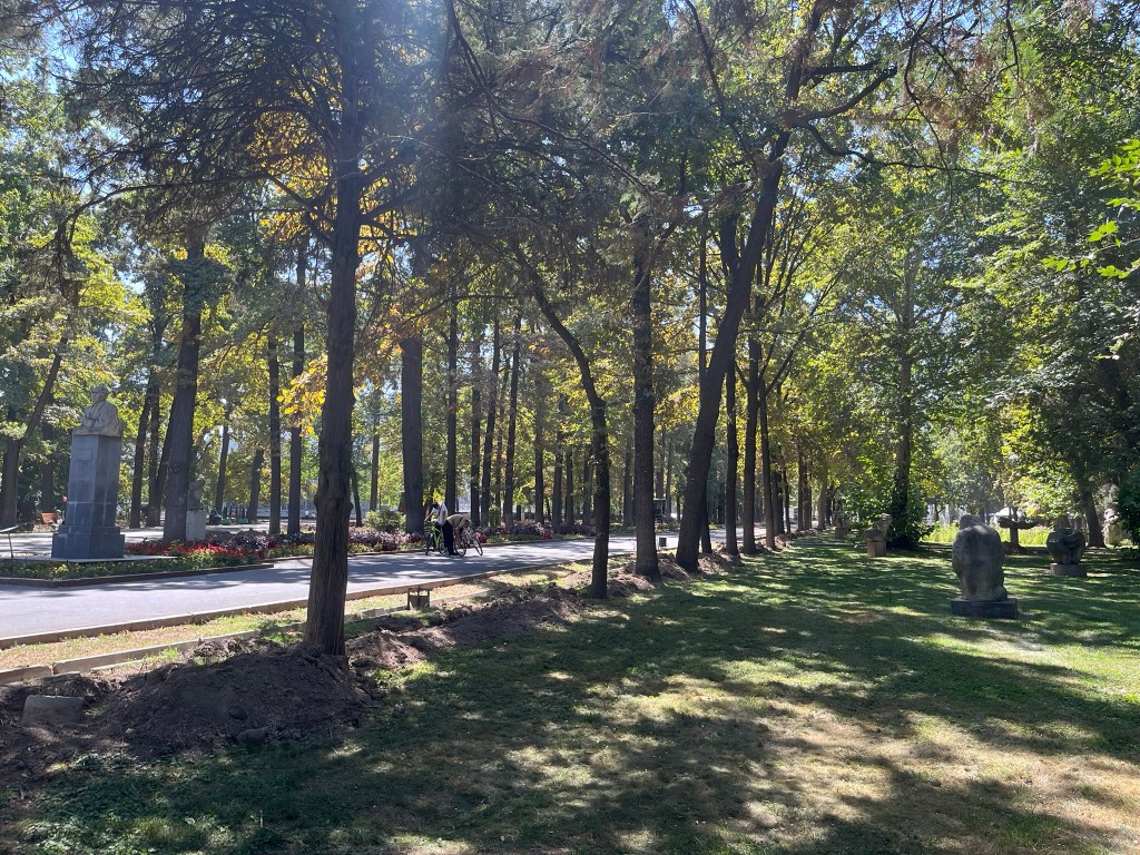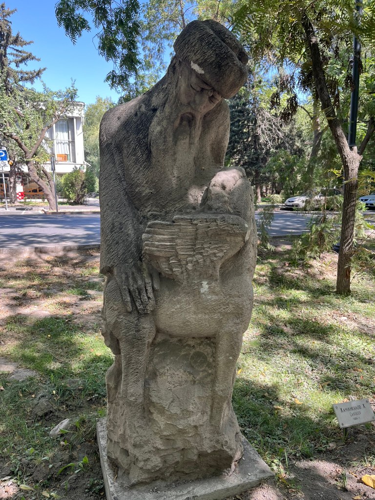 Behind the museum, there is a huge Lenin statue with a nice backdrop of the national flag and the snow-capped Tien Shan mountain range. This leads into Oak Park which is a big open-air sculpture gallery.