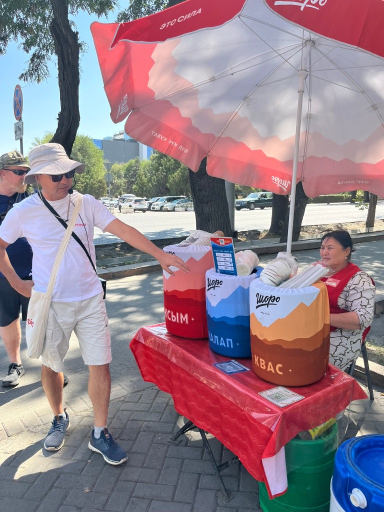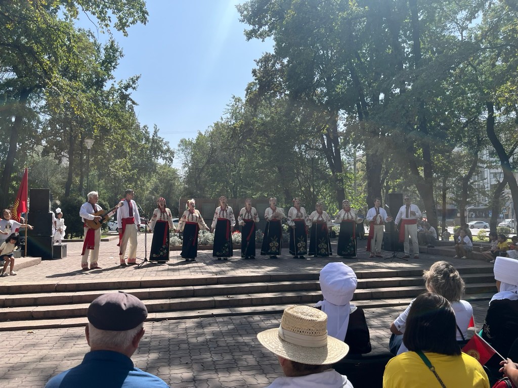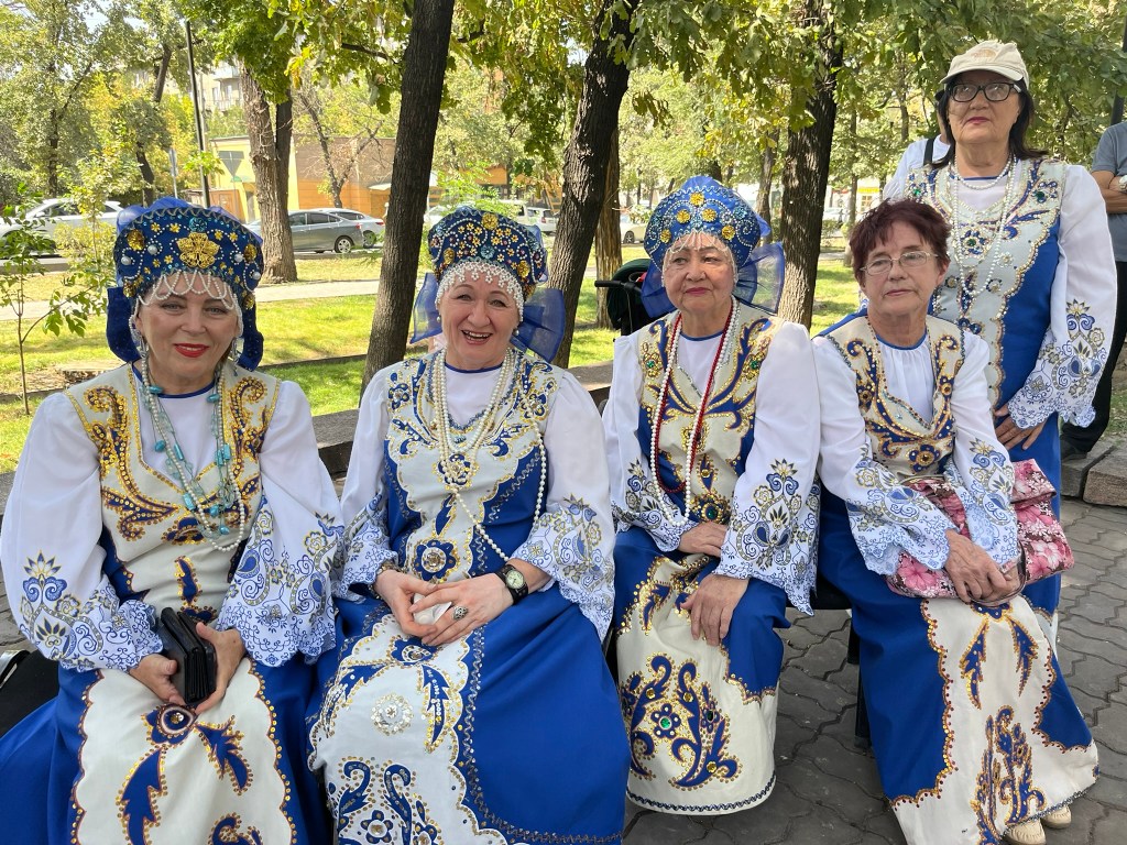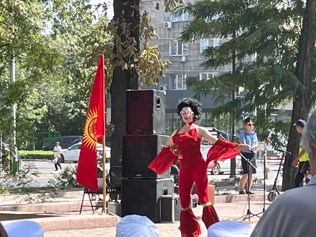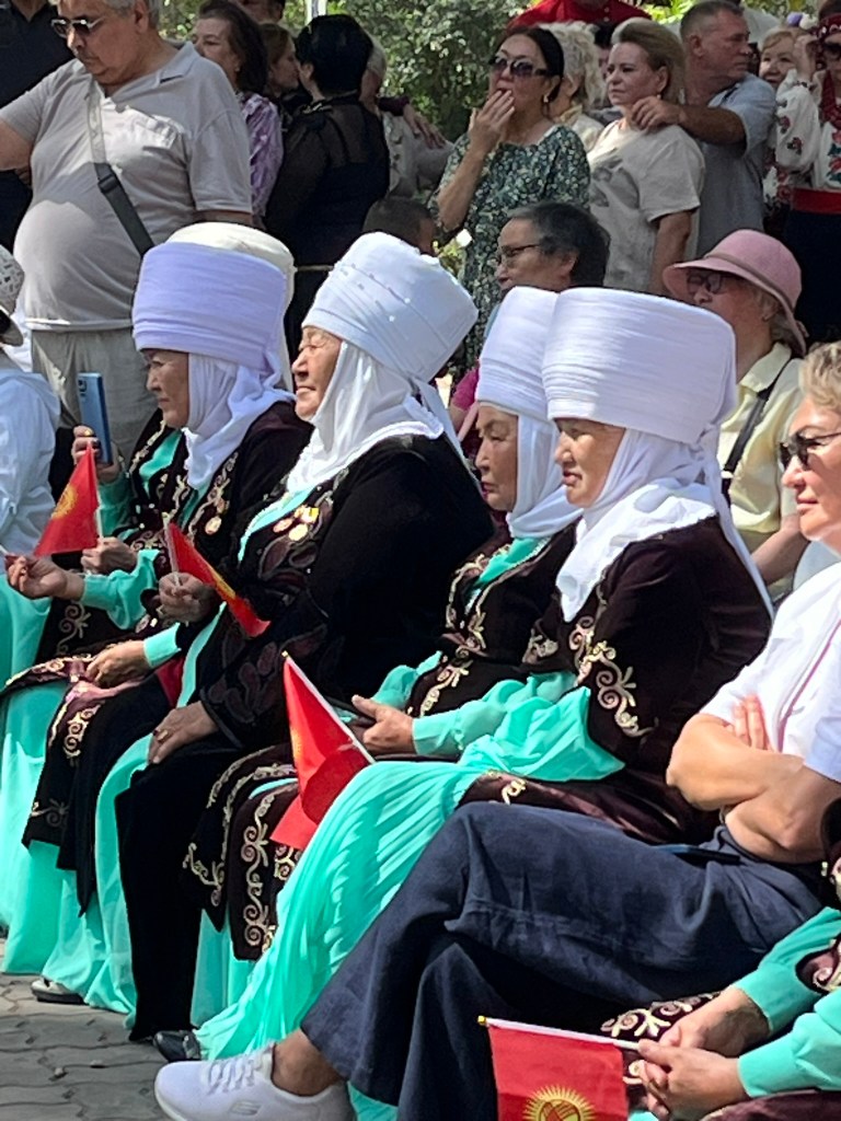We saw a group of ladies in brilliant blue traditional Kygryz outfits adorned with beads and embroidery. Another group of ladies wearing the traditional elechek (tall, white headscarf) that is wrapped around their heads like a turban. Another group wearing traditional outfits embroidered with flowers and motifs. And finally a group dressed as Cossacks who had travelled from Russia to perform at the celebrations. We left just as a group arrived on stage wearing lycra, afro wigs and sunglasses decorated with the flag of the UK and bizarrely dancing to Raspuitin by Boney M. I have no idea how that fits in with their national day celebrations!