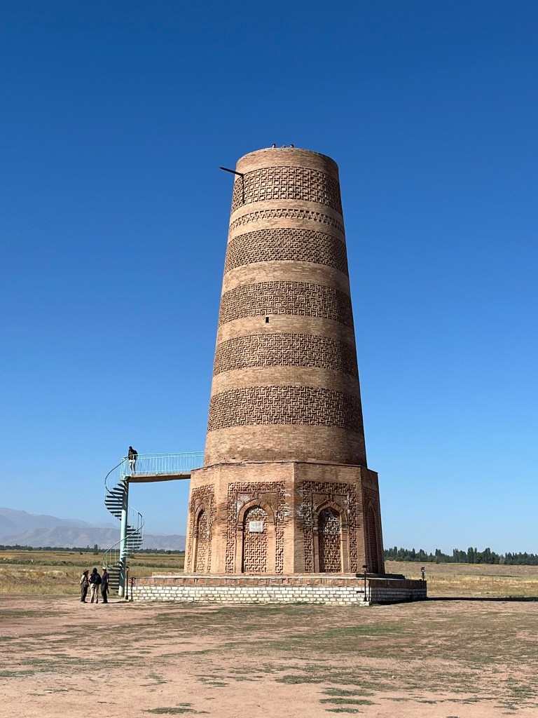 Burana tower is a well-frequented stop on the tourist route between Bishkek and Issyk-Kul lake. The ‘tower’ (its actually what is left of a minaret) is all that remains of a city called Balasagun, which has been anointed a UNESCO World Heritage Site. The city was established by the Karakhanids in the 10th century and was important as a stop along the silk road until it was abandoned in the 15th century. Originally the minaret stood at 46m tall but after many centuries of earthquakes and decay it now stands at only 24m high.