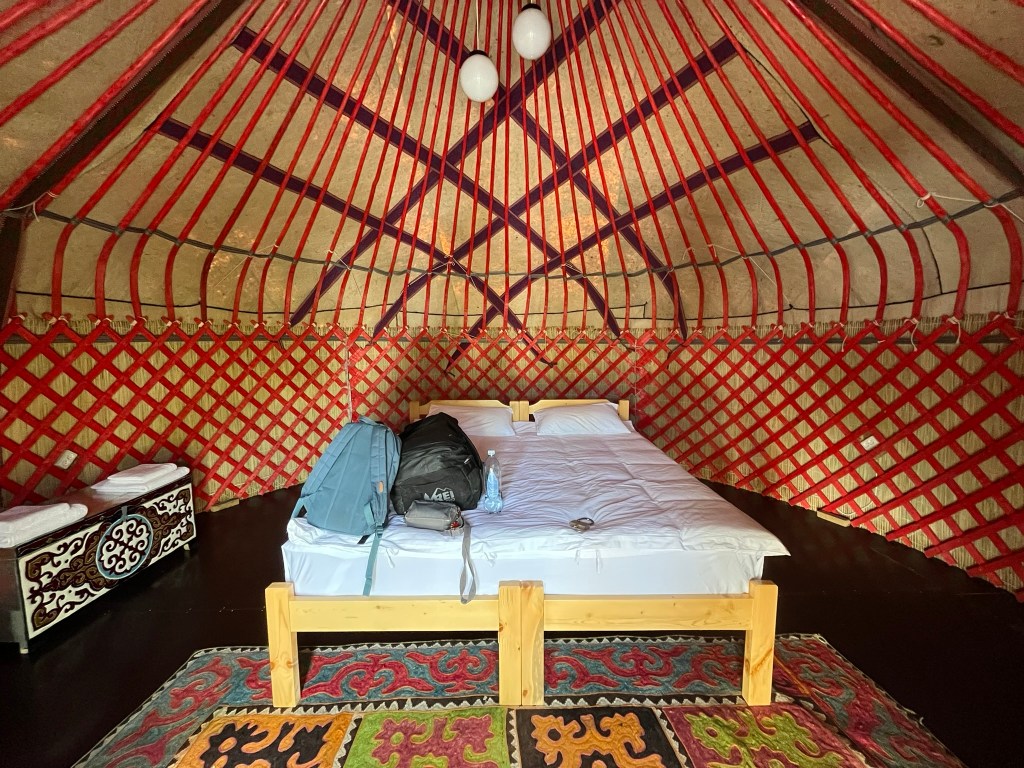 We then set off for our yurt camp for the next 2 nights on Issyk-Kul lake. The camp was amazing with brilliant toilet and shower facilities, a lovely central fire pit and big spacious yurts with really comfy beds in them. We took a short walk to the lake and learnt how to make the local fried bread (borsaks) to end the day.