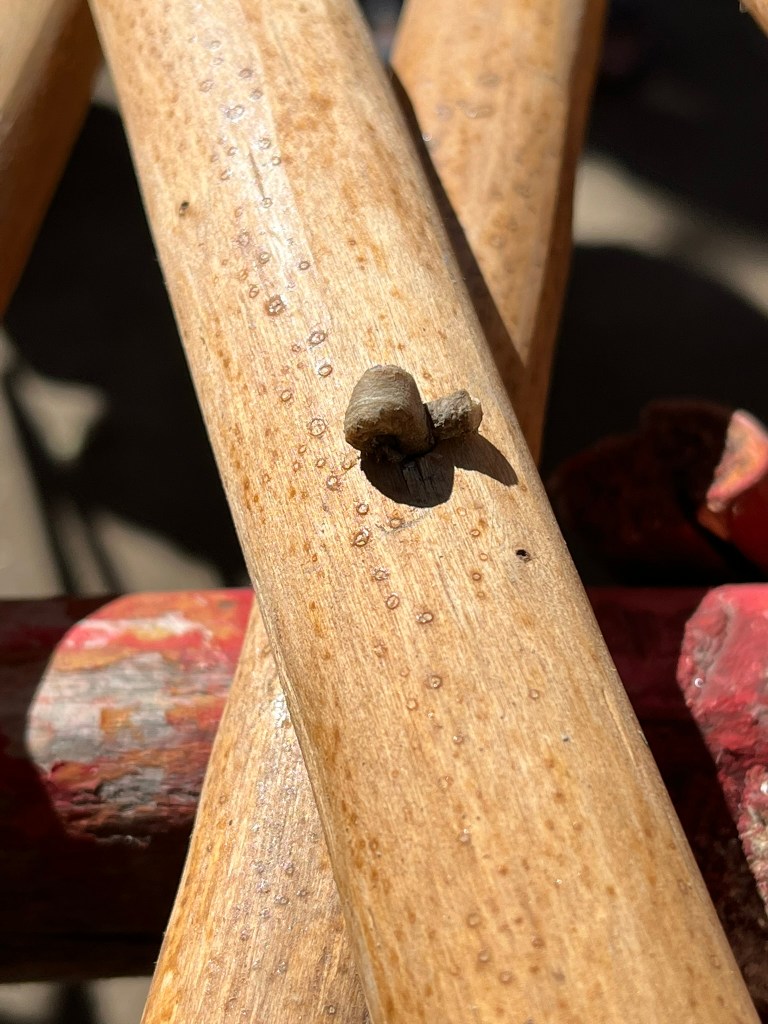 We started in Ruslan’s wood workshop and he took us through how he makes all the component parts of the yurt. The yurt’s skeleton is made of lightweight wood like birch, so that it is easy to transport when the nomads move camp. There are 4 main components; the walls, the door frame, the roof poles and the central crown known as the tunduk in Kyrgyz.