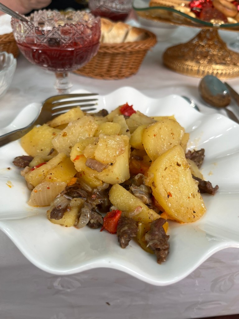 Afterwards we sat down to another great home-cooked meal in Ruslan’s house – this time for Kuurdak – fried beef with potatoes and onions. Yurt making is a must-do activity when visiting Kyrgyzstan and should ideally be combined like our group did, with a felt workshop to get a full understanding of nomad life.