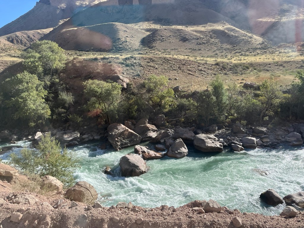 After a one night stop in Kyzyl-Oi we moved on heading towards the town of Toktogul. It took us around 6 hours including lots of stops for photos and coffee. As we left the village we followed the Kokomeren River along the narrow gorge, with steep red-rock cliffs towering over us on each side and the fast running rapids of the river churning below us.