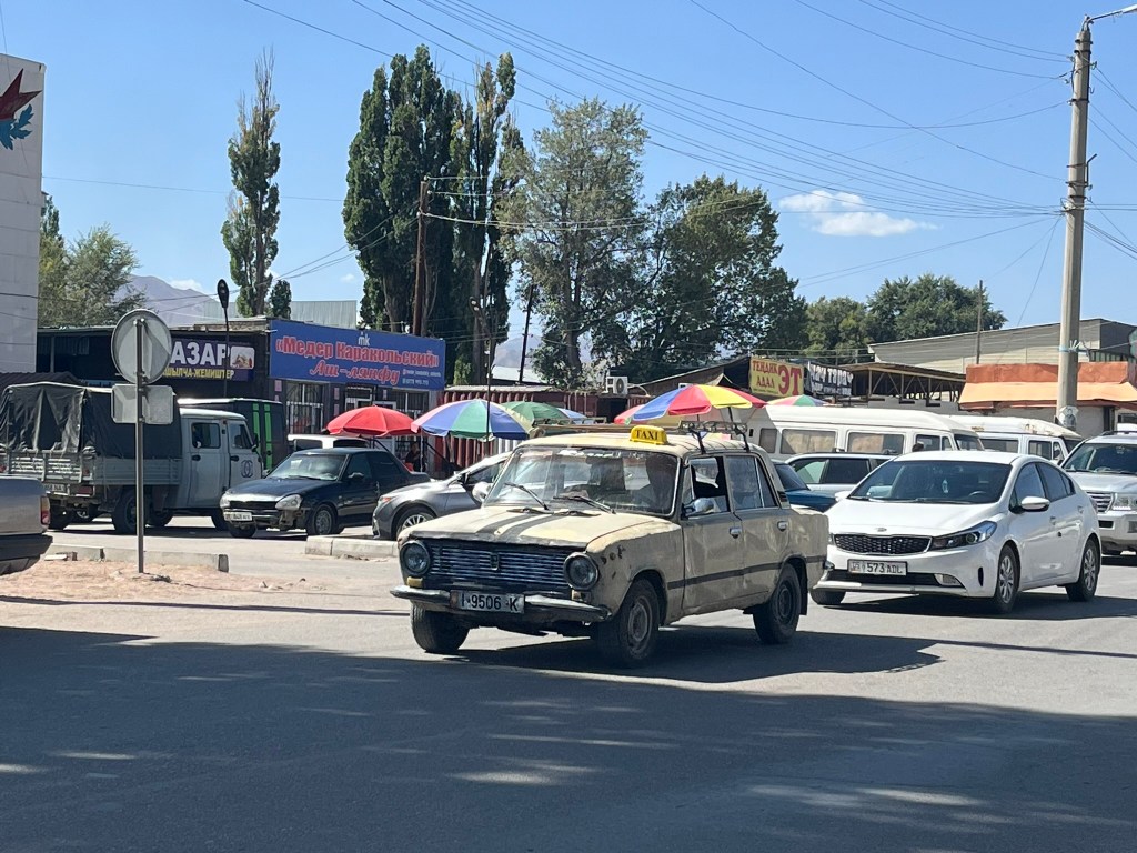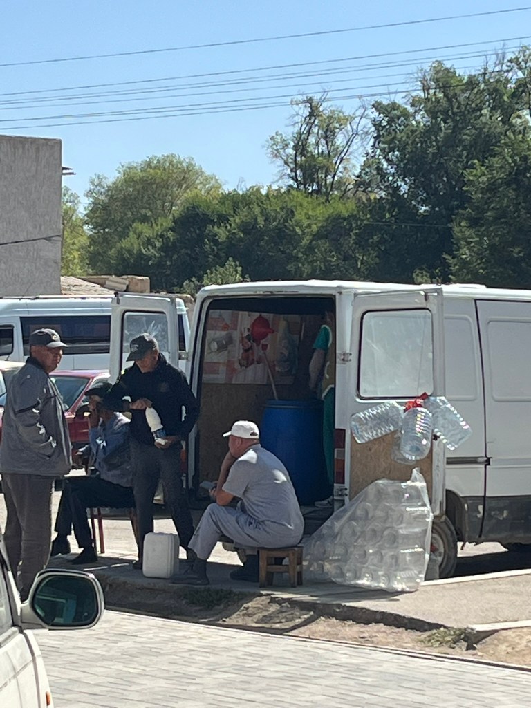 Today we left the shores of Issyk-Kul lake and were heading to Son Kul lake. The drive would take us around 7 hours in total including breaks to stretch our legs and have lunch. First we set off for the town of Kochkor, where we able to go to a supermarket and grab provisions for a picnic lunch. This little town was an interesting stop with the local market along the main street selling all sorts of things. The most fascinating was the lady selling fresh milk out of a big blue drum out of the back of her van, ladling it into old soda bottles for people as they passed.