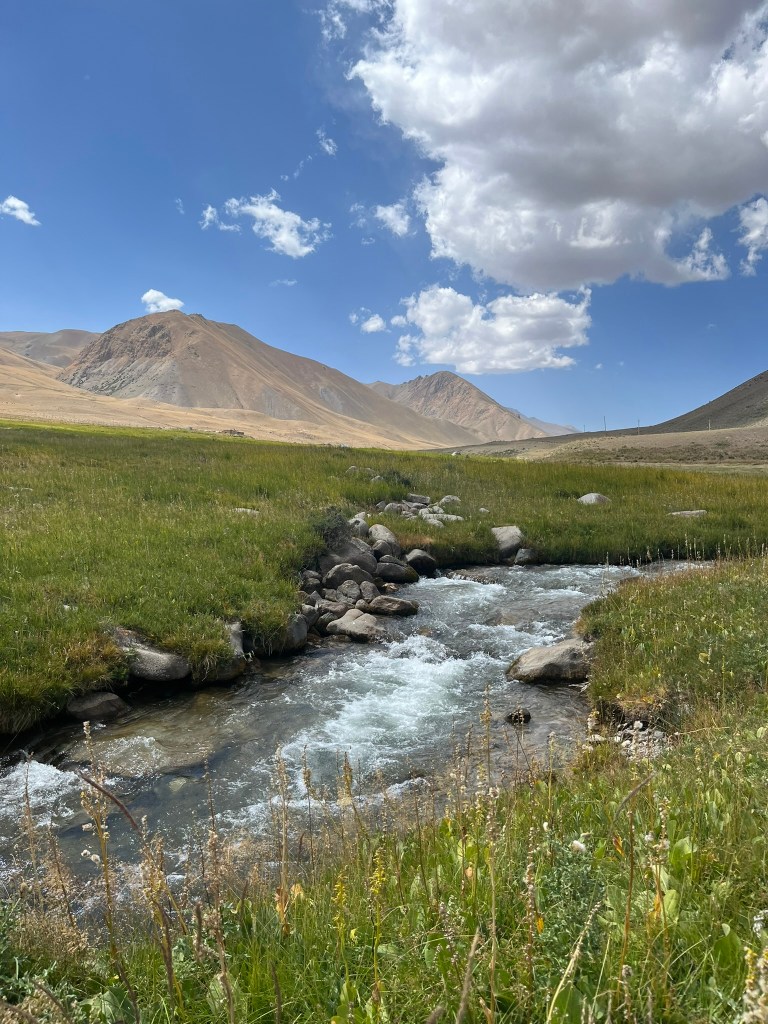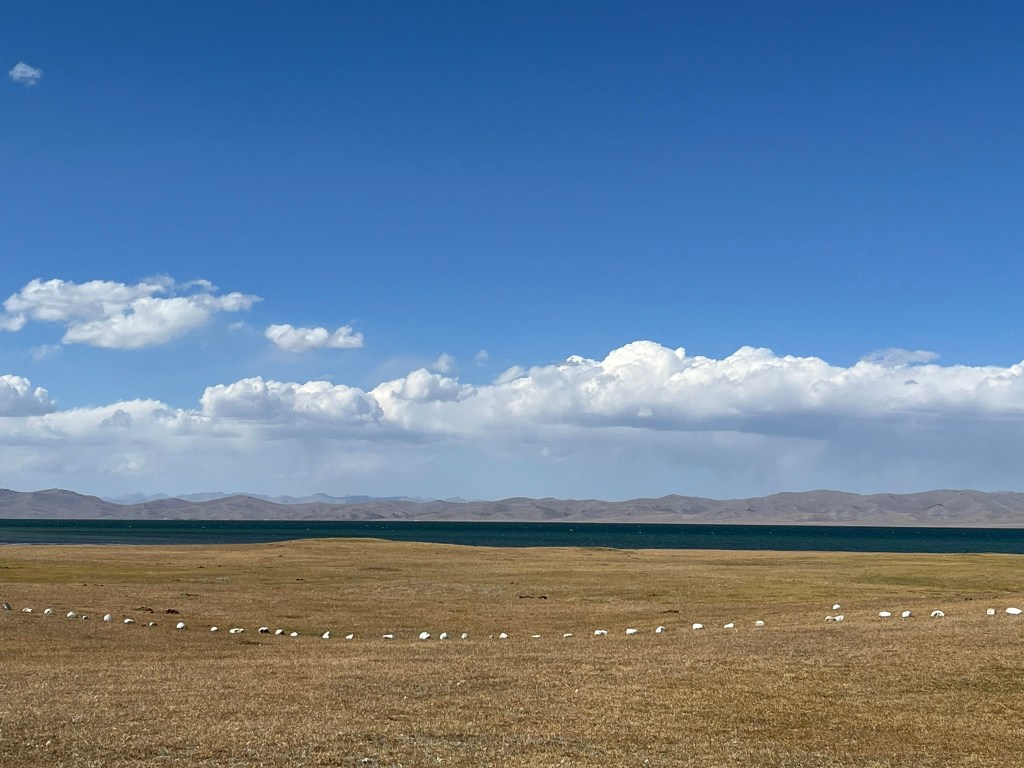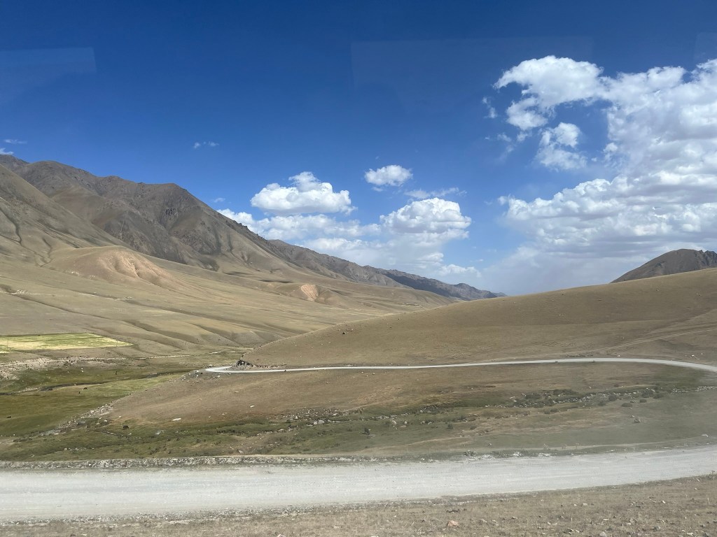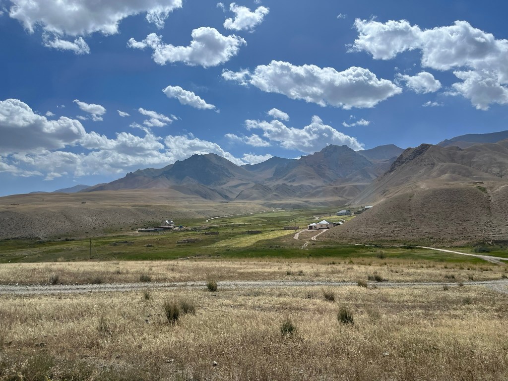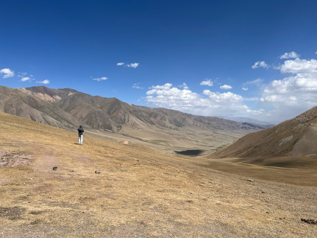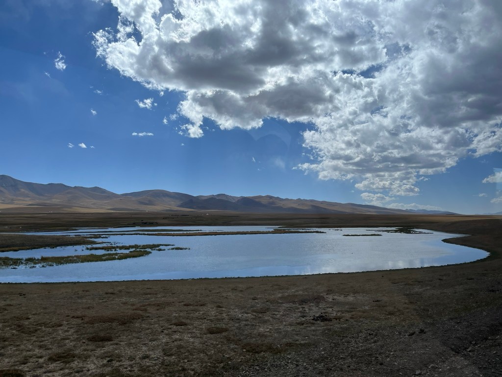 Our yurt camp sat right on the edge of the lake with almost nothing except scenic views in every direction. We arrived near the end of tourist season and had the camp to ourself. The owners said in the next few weeks they would be packing up the yurts and shutting up shop for the year. This camp was much more isolated than the one we stayed in at Issyk Kul lake. Other than a few other yurt camps by the lake shore, there are just grazing animals and a few shepherd yurts dotted around in the distance. My eSIM had no coverage and WIFI access was via a starlink satellite connection and not included. We had power via solar panels and this was only until 11pm and no hot water for the showers. That said the toilet facilities were still first class. The elevation meant it got much, much colder at night and we had to have a wood burning stove set up in the yurt for overnight. Considering we were in the middle of nowhere, it was pretty nice.