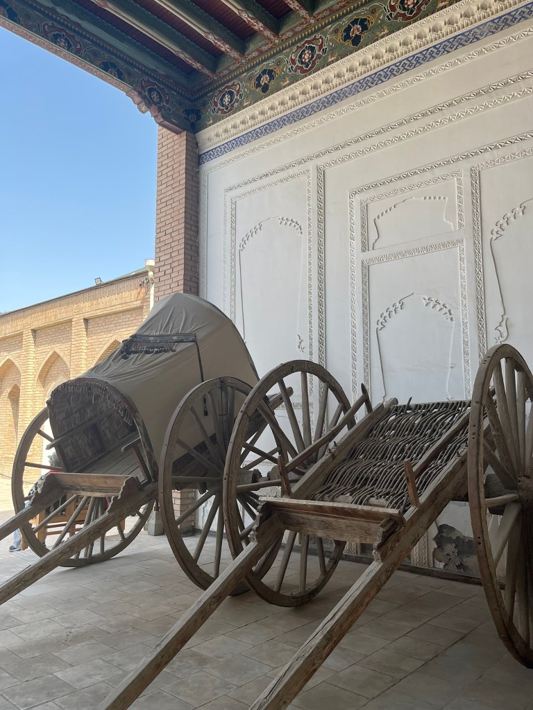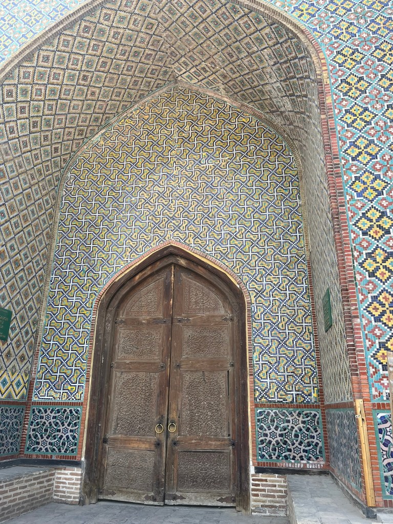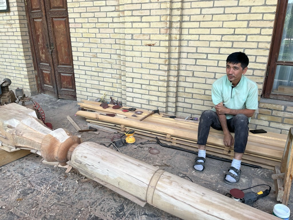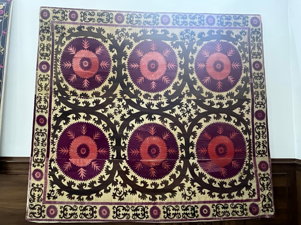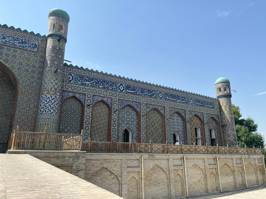 It’s a small city of just 250,000 people and far less touristy than Samarkand, Bukhara and Khiva but its the perfect place to see what is left of the capital of Kokond. At the time I was visiting it was preparing for the bi-annual International Festival of Handicrafters which I would have loved to go to. And at the Jami Mosque a big portion is now housing the Museum of Applied Arts, where master craftsman have small workshops where they can share with tourists their incredible skills. We met a master blacksmith who makes knives from Damascus steel and has travelled the world showing his creations at international craft fairs. And a master weaver who creates a special type of silk fabric that seems to have shimmering waves in it, that he sells to big fashion houses in France. After a little googling I think it was moire silk, but it was difficult to tell as he said his process was a secret!