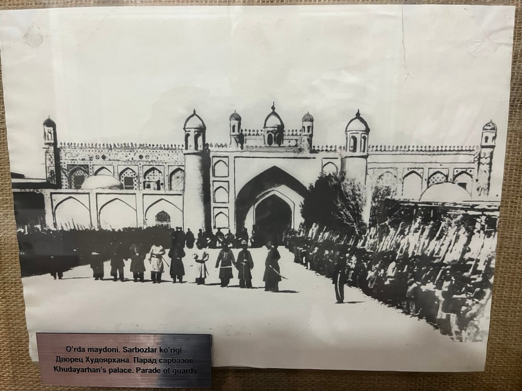 The Kokand Khanate was founded in 1709 when a local Uzbek tribal leader declared independence from the Bukharan Khanate and established Kokond as his capital. The location was ideal, with a fertile valley to grow crops and a mountain pass between them and the Bukharan Khanate. It became rich through silk road trading, agriculture and crafts. And it was a strong Islamic center with dozens of mosques and madrassas built.