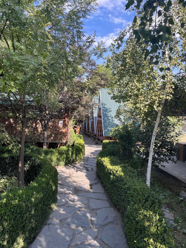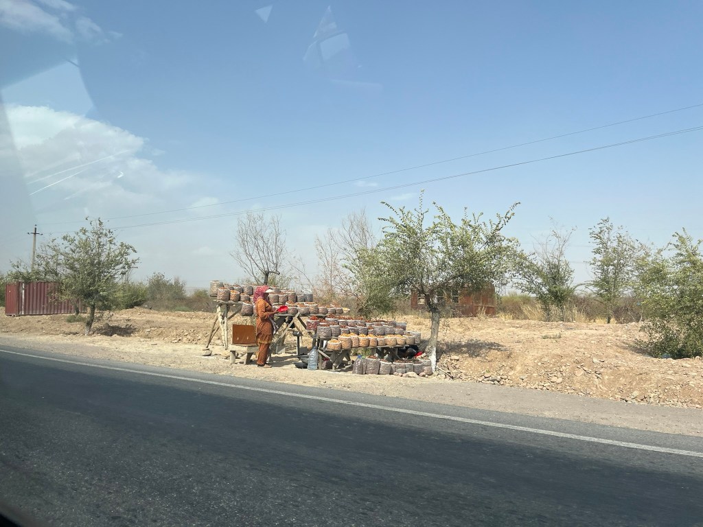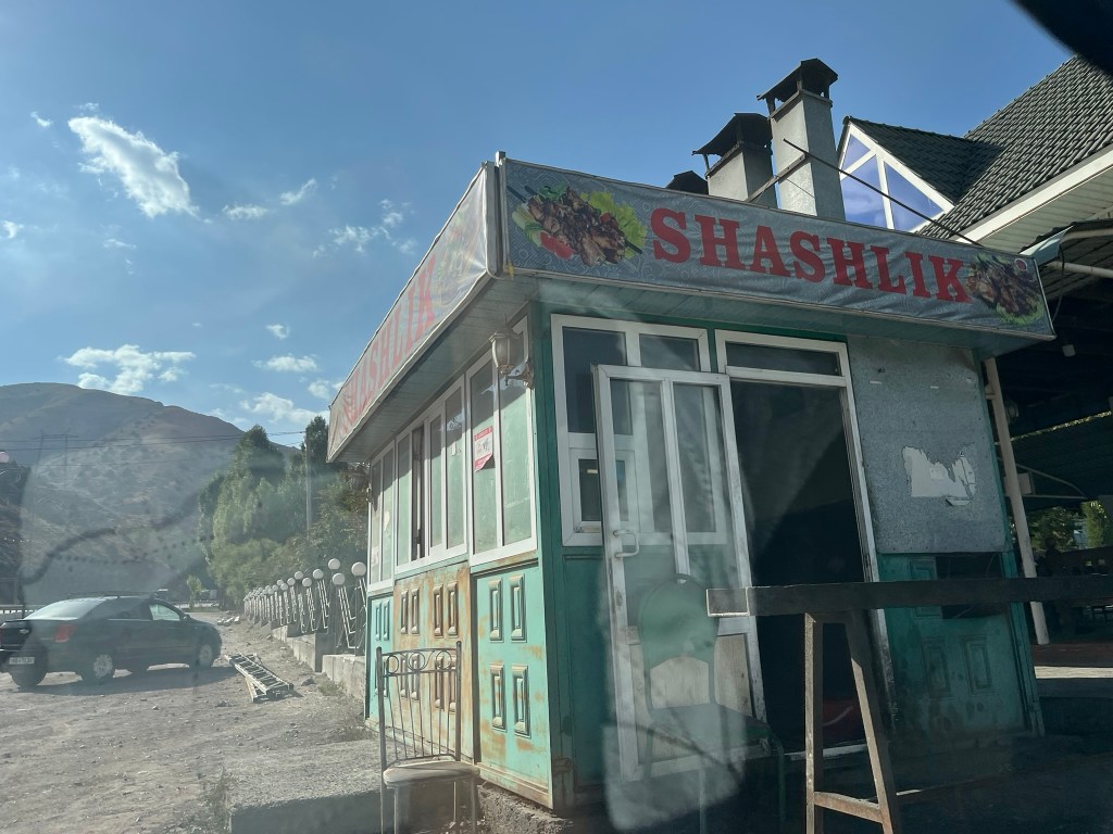 By lunch time we were ready to hit the road for a long drive through the Kurama range and over the Kamchik Pass. Historically this was a chokepoint between Fergana Valley and the rest of Uzkbekistan and it really isolated them. And its easy to see why. Even with a good road, winding switch backs and a few tunnels, the journey up and over the mountain range took a couple of hours. My driver took me to an awesome road side shishlak kebab restaurant where we sat in little huts just off the main road surrounded by greenery and enjoyed enormous beef kebabs and a pile of fresh onions and tomatoes.