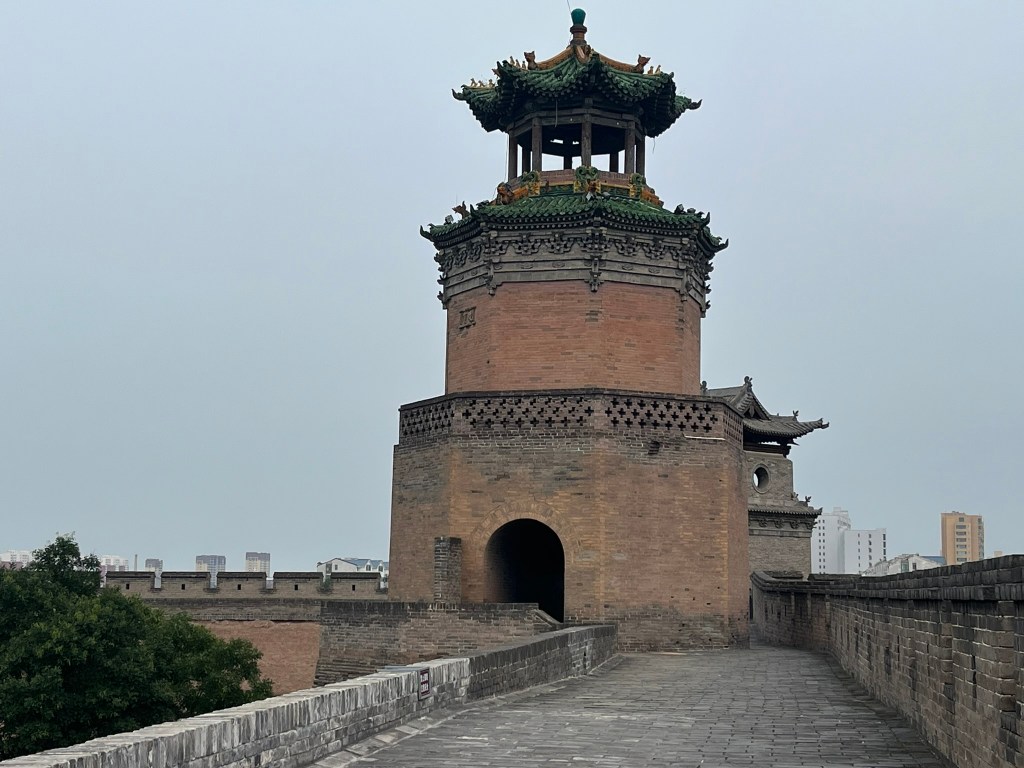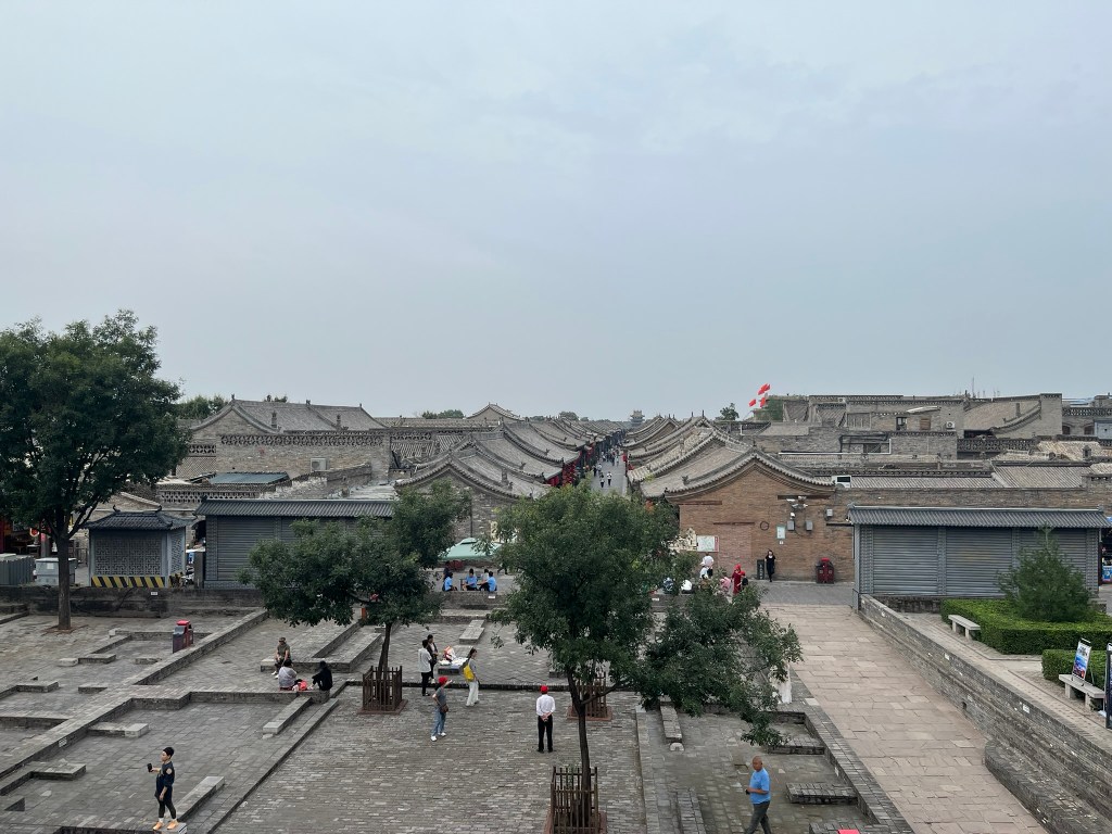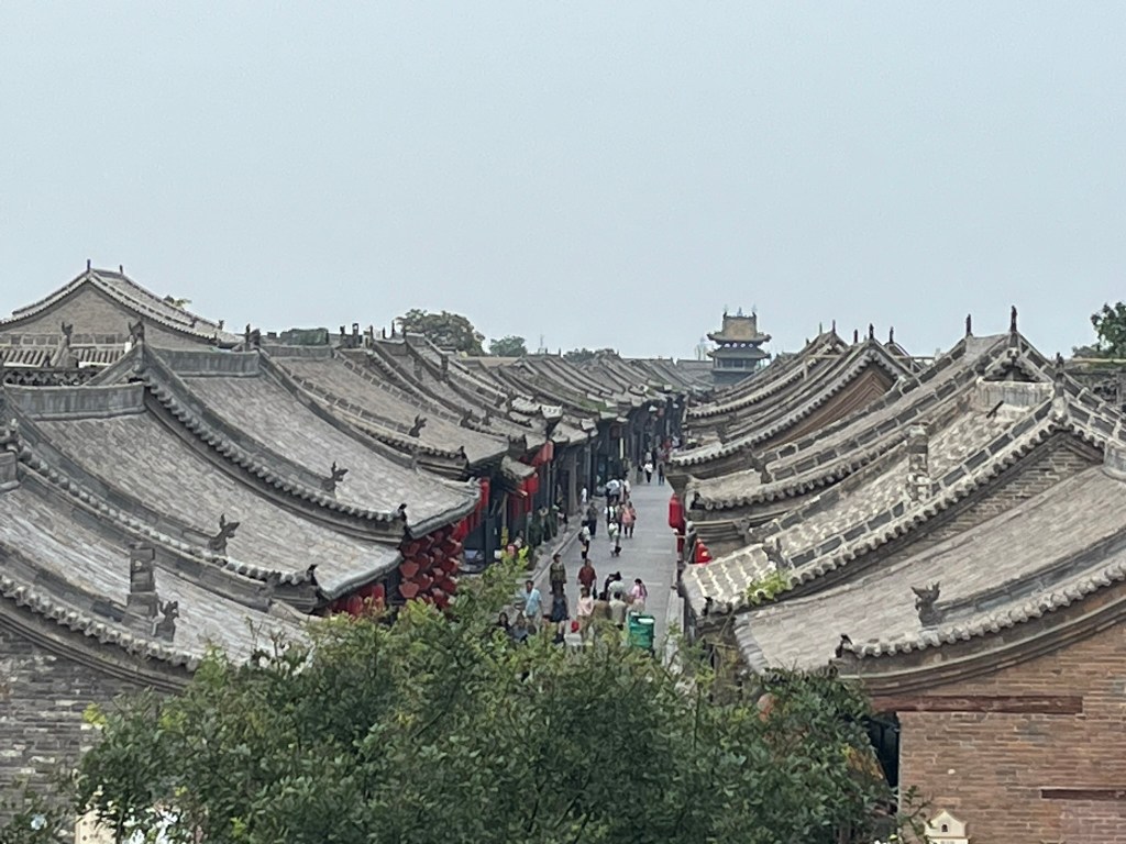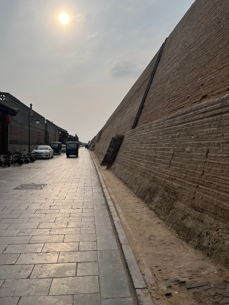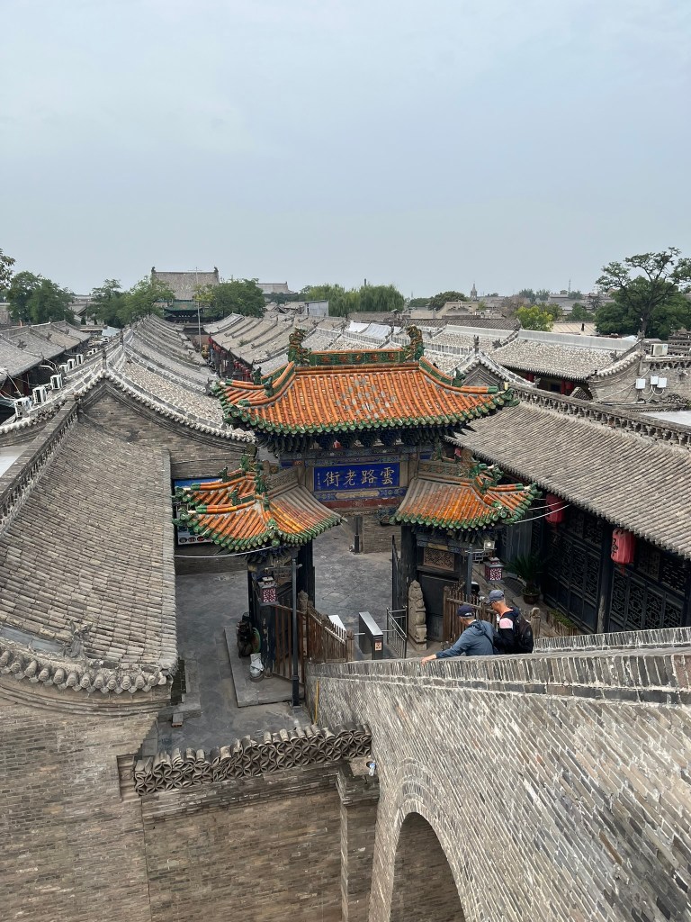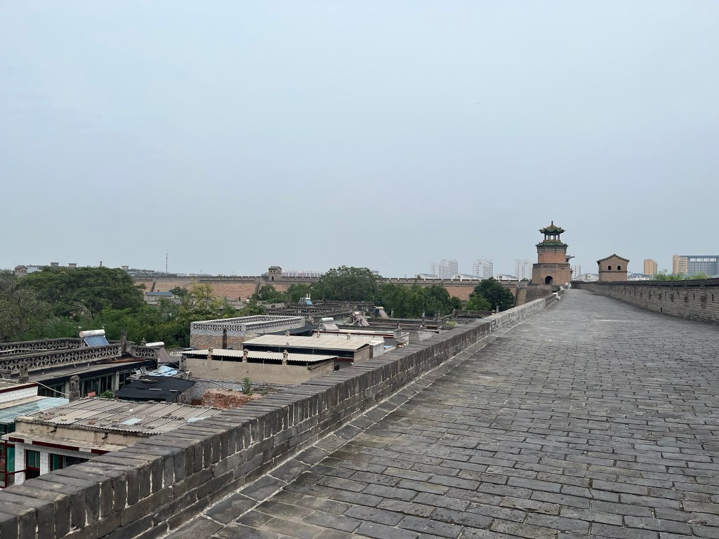 The city wall is one of the highlights and completely encircles the city. It is built of rammed earth and brick and is in very good condition. You can climb up and walk along the entirety of the wall, getting great views of the city below. It is much easier to appreciate how complete in its preservation the city is from this view. With a flat skyline of 1 or 2 story buildings, forming hundreds of grey brick courtyard houses with sloped gable roofs and heavy timber beams with dougong brackets.