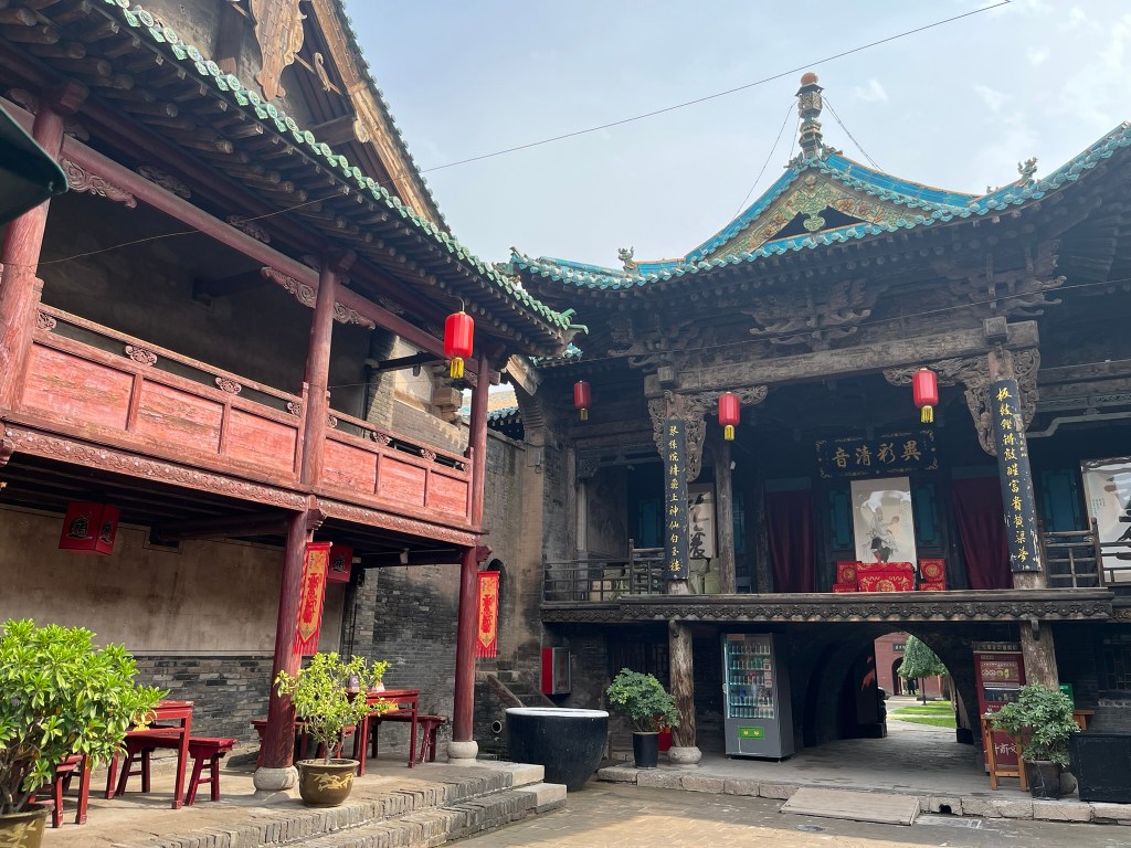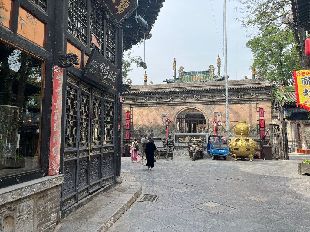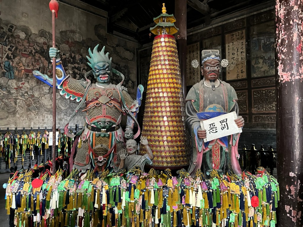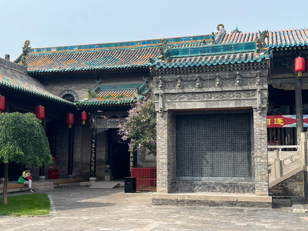 A few minutes down the street is the City God Temple, with most of the current building from the Qing dynasty. It is one of the best-preserved Daoist ‘City God’ temples in China. The City God (which I had never heard of before) is believe to be the spiritual magistrate of a city, overseeing morality, justice and protection. The City God judged the souls of the dead, deciding rewards and punishments in the afterlife. For merchants in Pingyao he was also the patron of honest trade. The highlight (for me at least) was the roof tile decorations, with brightly glazed tiles and dragon-fish ridge ornaments.