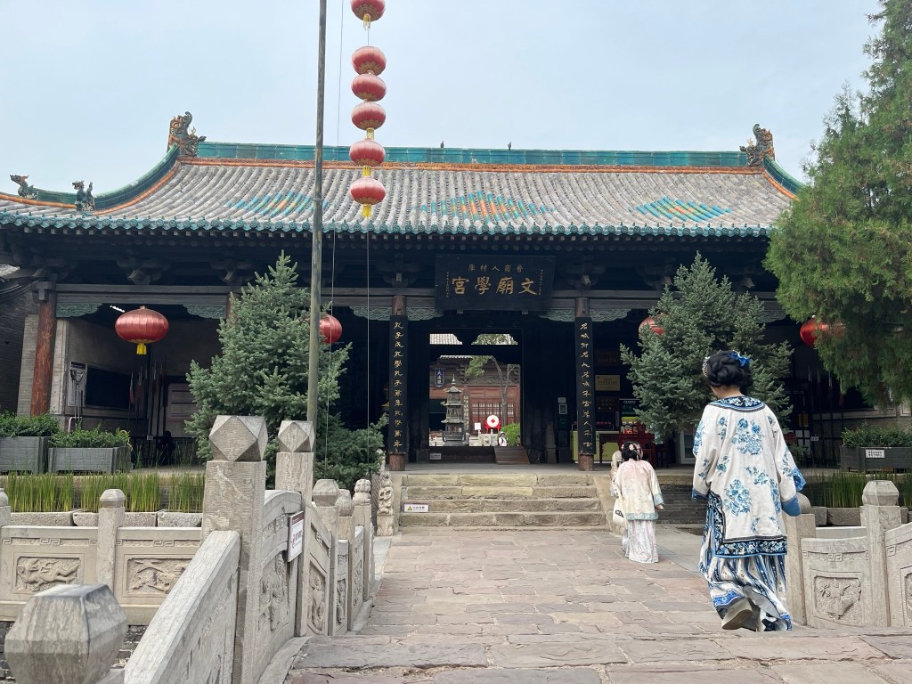 We walked along the wall for about 20 minutes before exiting to visit the Confucius Temple. It is one of the largest and oldest in Shanxi, with most of the current design from the Ming era. This temple was also the center of education in olden times, and was where students prepared for the prestigious imperial civil service exams.