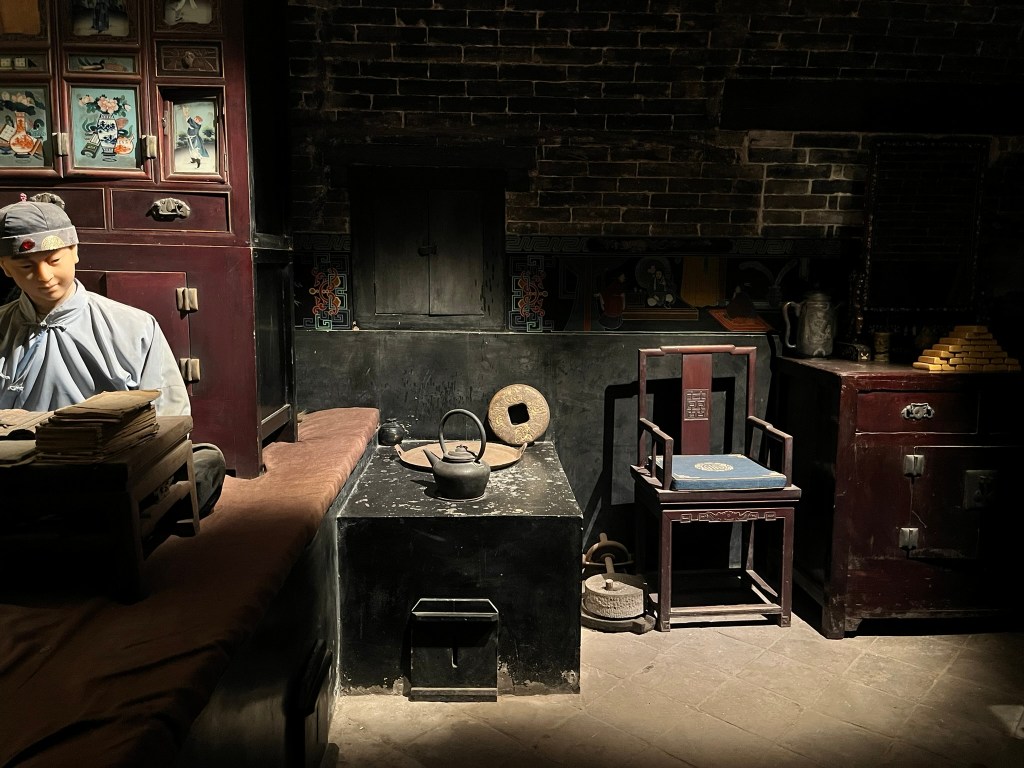 During my time in Pingyao I visited 2 banks, but there were many more that you could visit, all included in the ancient town tourist ticket. The first bank I visited was the Rishengchang Draft Bank, founded in 1823 by a wealthy merchant called Lei Lutai. This is considered the first true ‘bank’ in China and is what earned Pingyao its strong financial reputation. It was headquartered on West Street and eventually had branches across China and even in Russia. It provided services such as currency exchange, loans, deposit-taking and remittances. The size of the shop-front of the bank is deceptive as the courtyard compounds behind the streets are extensive, with front courtyards housing counters and reception halls and the rear courtyards used as living quarters, accounting rooms and vaults.