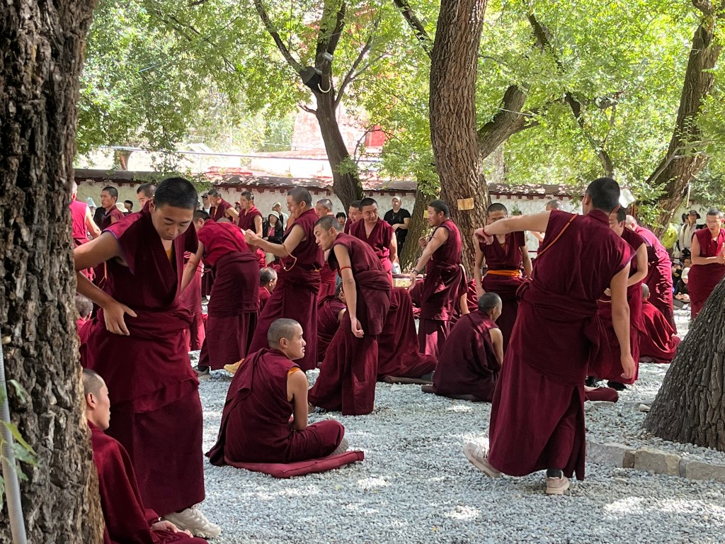 As you enter the courtyard, it is a cacophony of noise, with a couple of hundred monks all debating with each other with great energy. There is always a ‘questioner’ who stands, poses questions and challenges answers. They clap their hands dramatically, stomp their feet and flick their prayer beads to place urgency and pressure on the defender. The defender is sitting and must respond to questions using logic, doctrine, scripture and knowledge. Debating happens every afternoon from 3-4.30pm and they allow tourists to stand on the edge of the courtyard and watch. There is no ranking, and regardless of experience anyone can be a defender or a challenger. It is about the monks testing and focussing their minds and you can see how hard each sitting monk is thinking as they answer the questions. And it is honestly one of the most unexpected and brilliants sights I have ever seen.