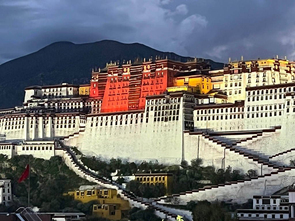 Potala Palace is built on Marpo Ri hill (or Red Hill) looking down over the Lhasa River and has had some sort of fortress structure built on it since the 7th century, when King Songtsen Gampo built a fortress for his Chinese and Nepalese brides. Today’s immense structure was built starting in 1645, by the fifth Dalai Lama, and symbolised the union of political and religion power in Tibet under the Dalai Lama. From the 17th century until 1959, the palace served as the winter residence of the Dalai Lama and the center of the Tibetan government. Today it is no longer used for government purposes and it is a museum and pilgrimage site. It was designated a UNESCO World Heritage Site in 1994.