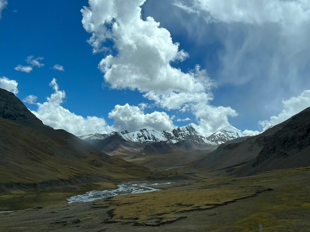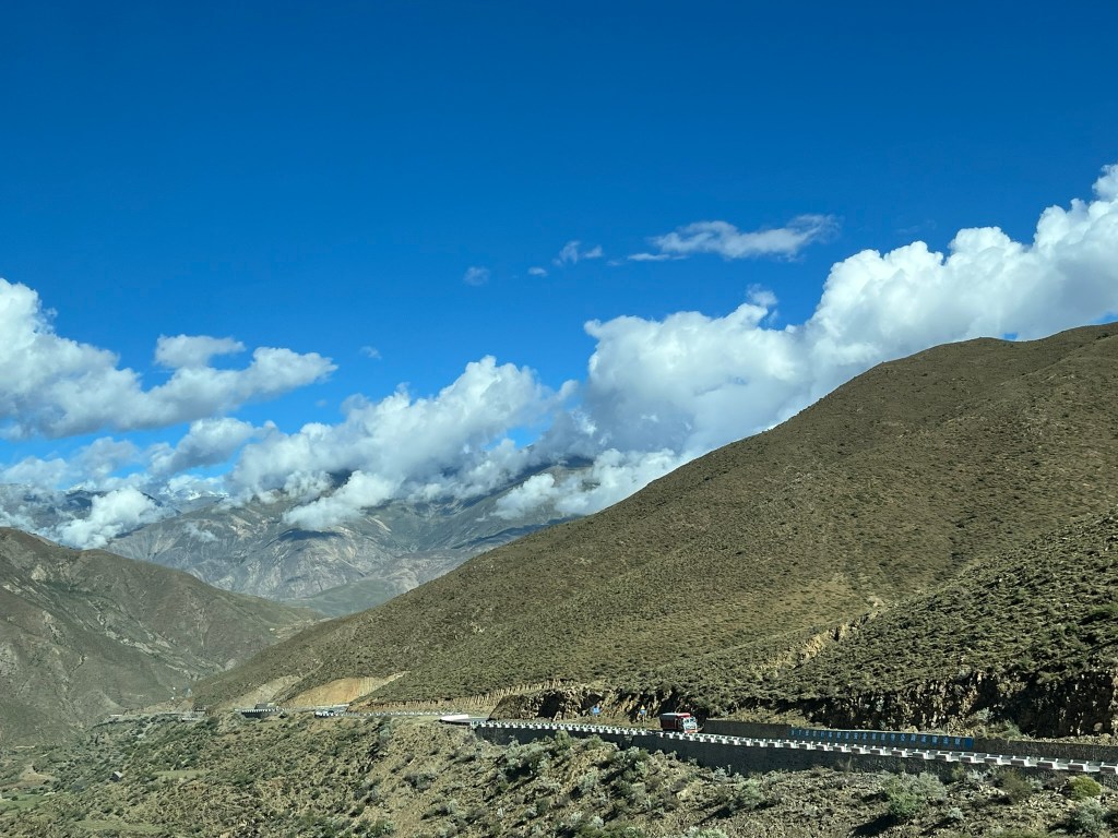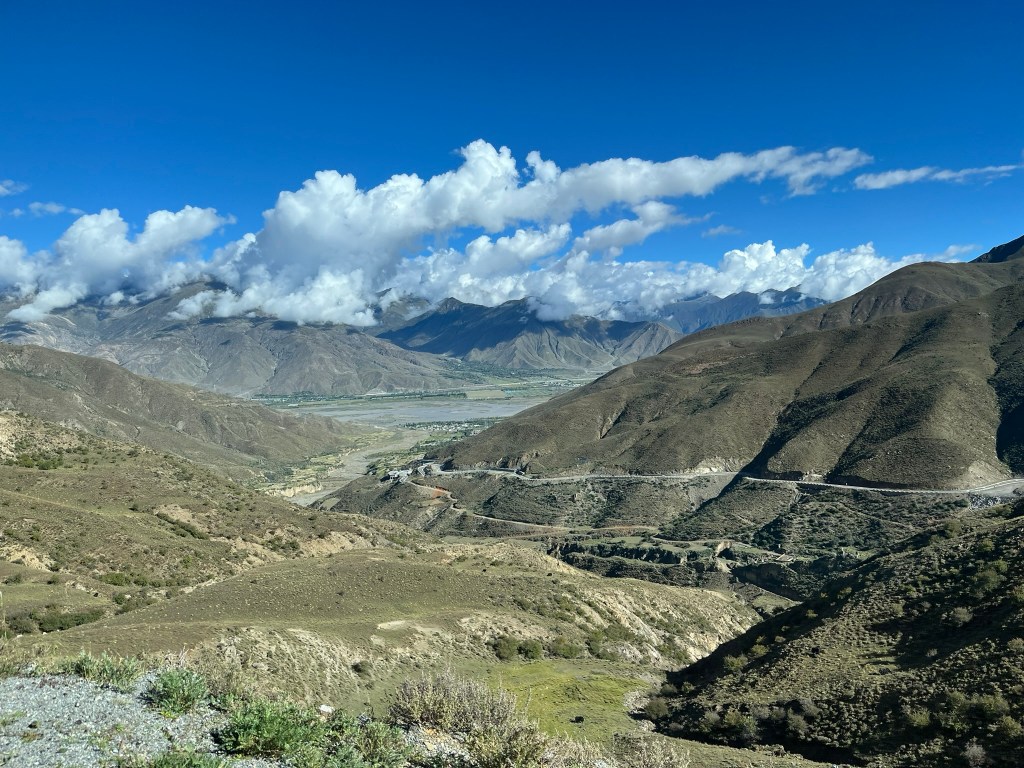 Departing Lhasa took a little longer than expected as there was a half-marathon and many of the main roads were closed for the event. But we eventually left the city and Lhasa Valley behind, crossing the Lhasa River and starting our ascent to Kamba La Pass at 4,794m. The road conditions were great as we slowly wound up along ten’s of switchbacks to the mountain pass and there was a distinct shift to a drier and rockier environment. The view from the top looking down to Lhasa Valley was fantastic.