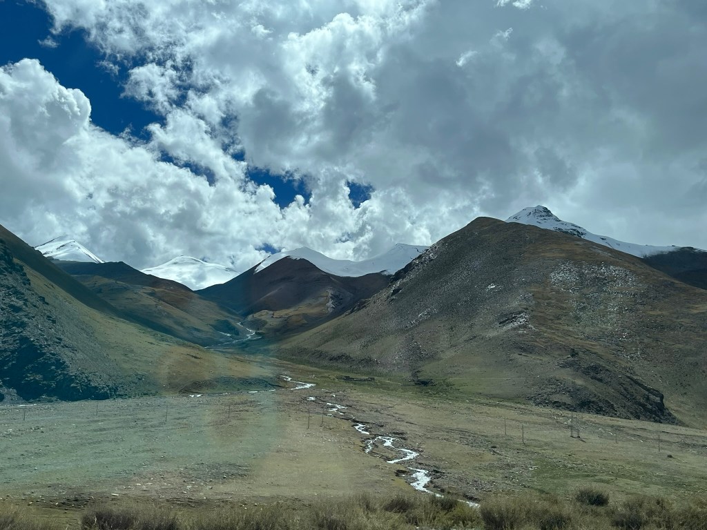 We then continued our journey to the small town of Nangartse, which most tourists on this route use as a lunch stop. All along the route we were seeing yaks and sheep, alongside traditional Tibetan herders. From lunch onwards, the scenery started to become even more dramatic, with snow-capped mountains with craggy, jagged peaks over 6000m altitude surrounding us. It was difficult to appreciate their size, because the valley we were in is already over 4000m in altitude.
