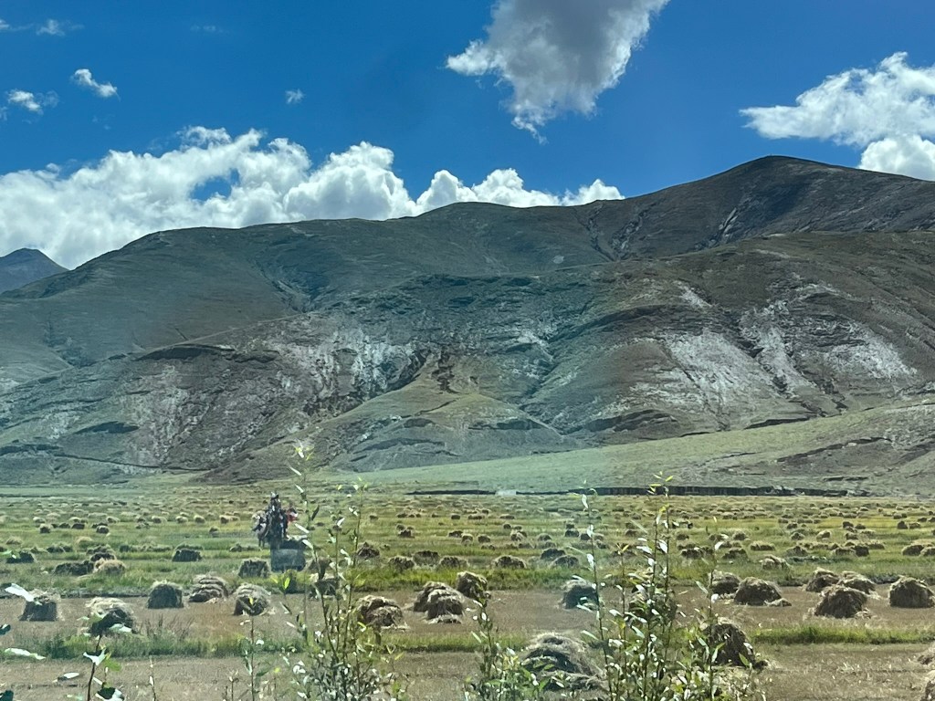 In the final leg from the glacier to Gyantse, the harsh and rugged landscape opens up to a wide river valley regarded as the ‘World’s Home of Barley’. It is harvest season so every field was covered in golden barley, cut and placed into piles to dry before it is processed.
