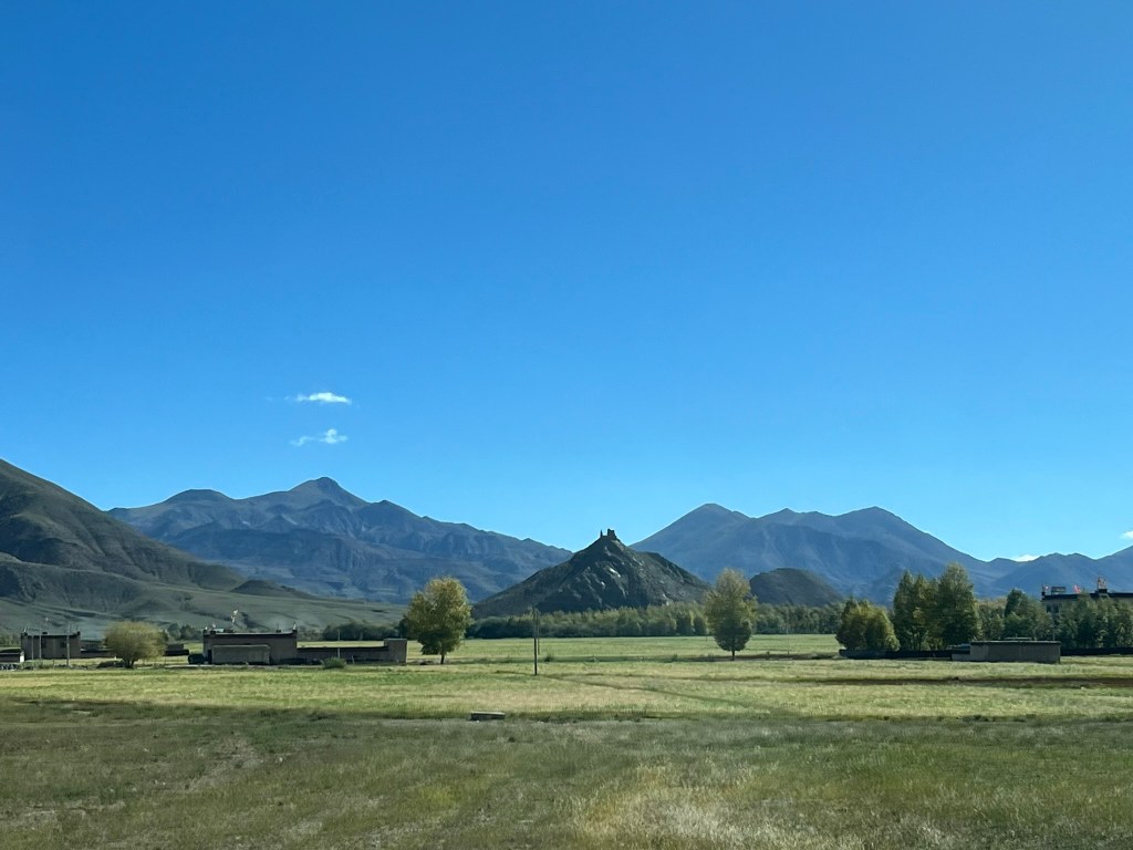 And then we arrived in Sakya after an unrushed easy 4-hour drive ready to explore the monastery the city is famous for. This road was so quiet compared to our journey from Lhasa to Gyantse. We saw no other tourists throughout the drive and just a handful of cars and motorbikes passed us. I also really loved seeing locals dressed in their traditional colored aprons and silver belts, out in the barley fields.