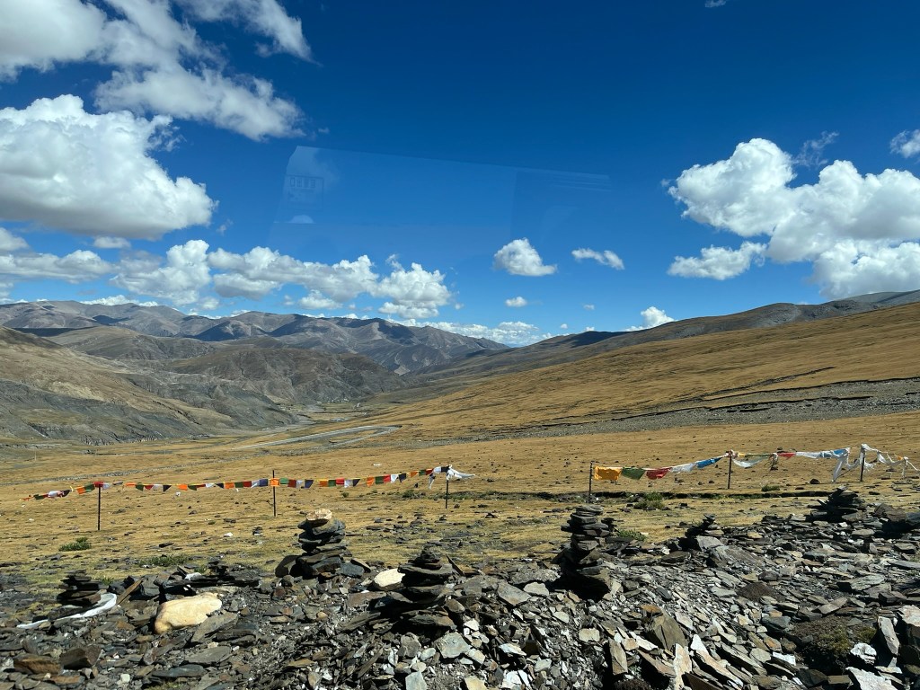 After our tea break we started our climb up to the pass, zig-zagging back and forth through a mixture of barren rock and moss. At the top of the pass we stopped to appreciate the view and the many prayer flags that had been left over time. We also did our bit for the environment, by doing a rubbish clean up for 20 minutes. Considering there was a big bin provided, plus signs asking people not to litter, the amount of rubbish that was collected was crazy. Our guide posts videos on WeChat, trying to encourage others to do litter picking and change behaviours in Tibet.