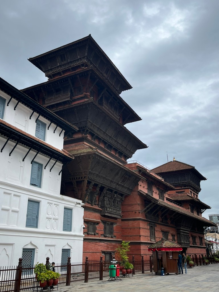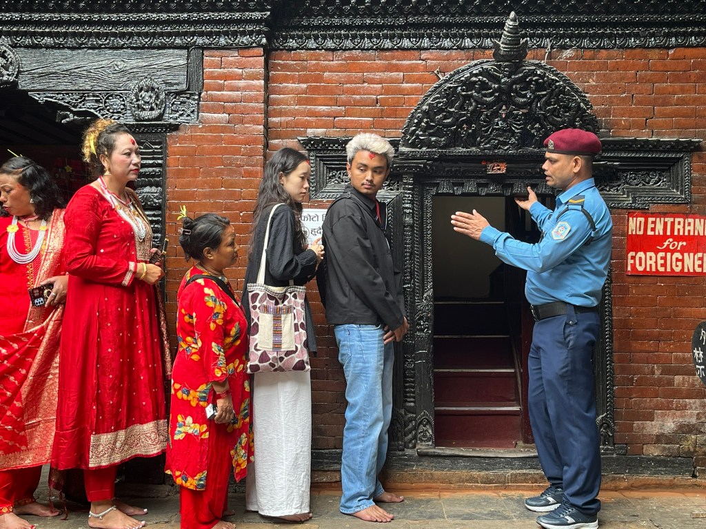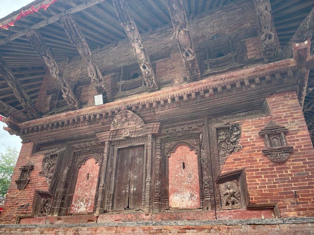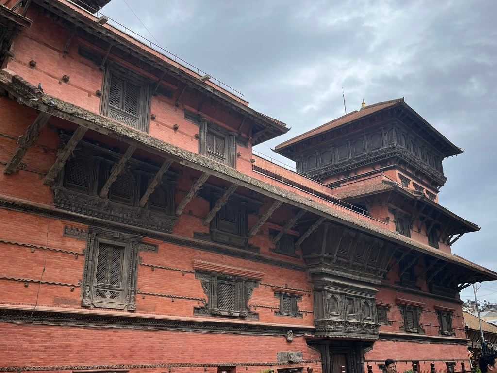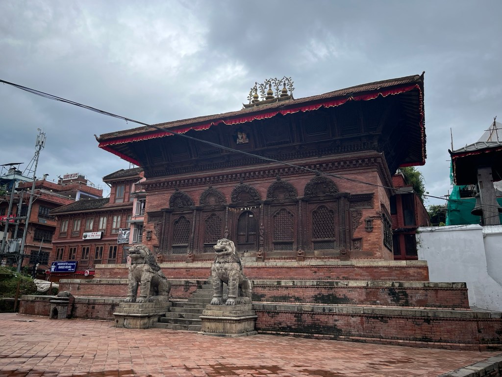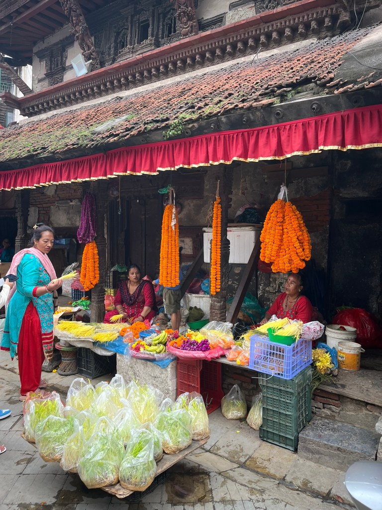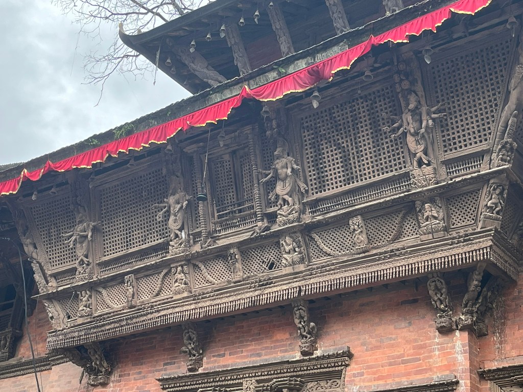 There is also a very curious smaller palace within the complex that houses ‘the living goddess’ or Kumari. This is a tradition in Nepal where a young girl is selected from the Newar community to be revered as an incarnate goddess and a form of Durga (the goddess that is being celebrated during Dashain). Most interestingly, a new Kumari had only been selected 2 days before hand, a young girl of just 2 and a half years old. The selection process is rigorous with physical and spiritual criteria. She would now live inside her palace, giving blessings and only coming out into public for specific ceremonies and festivals in her chariot. She would stay until she hit puberty at which time a new Kumari would be selected and the previous would go back to her regular life. Our guide explained, during her time in the palace, she would receive education, and have the opportunity to play with other children but that she would receive pilgrims for at least 2-3 hours a day which seems kind of crazy. As we visited the courtyard of the palace there was a growing line of locals to meet the new Kumari, but foreigners are not allowed.
