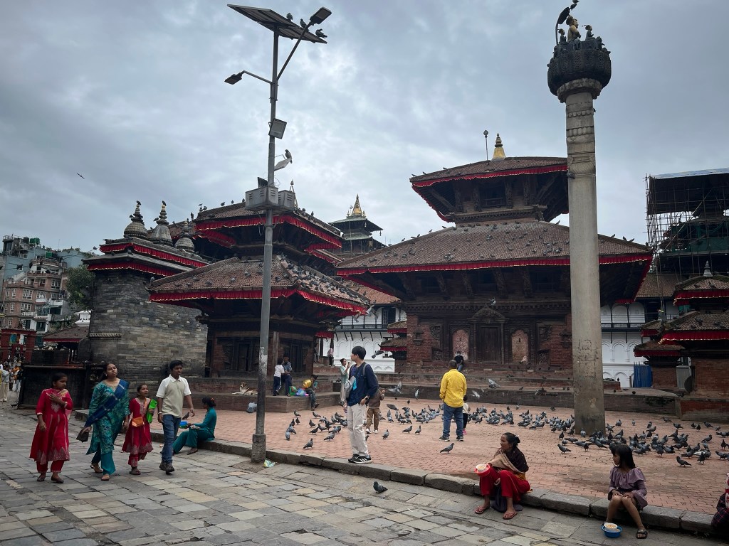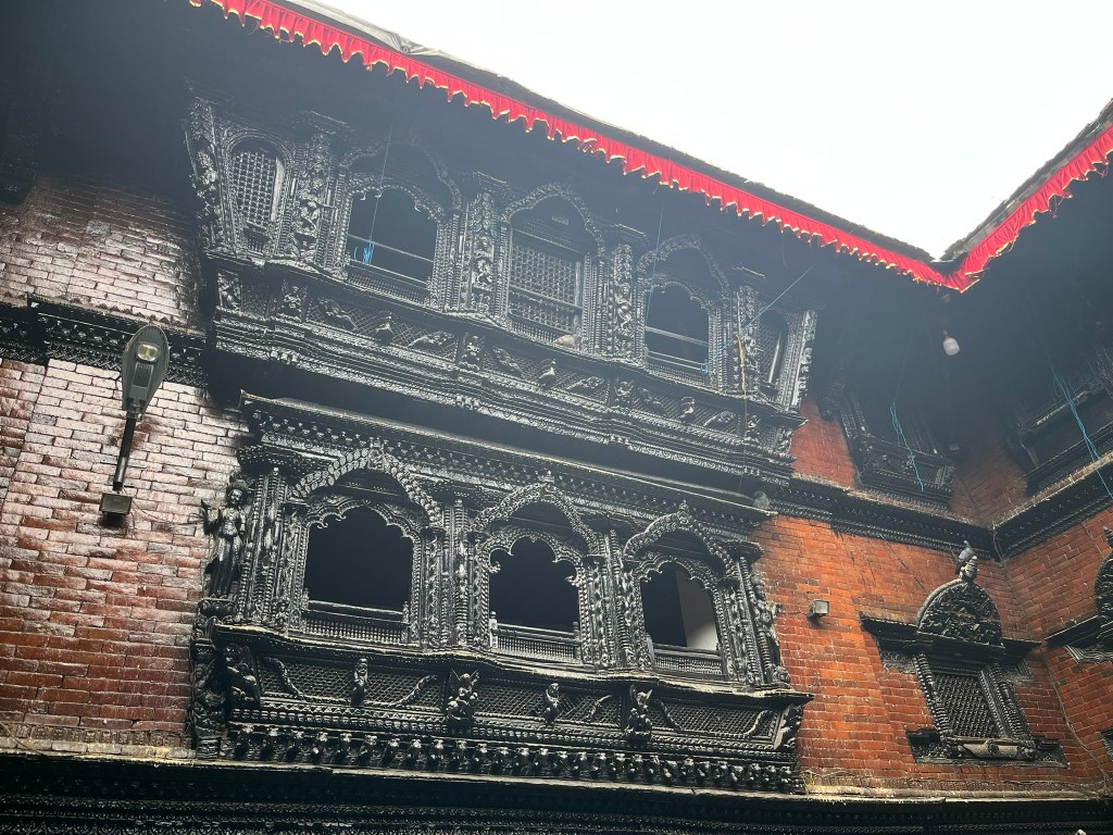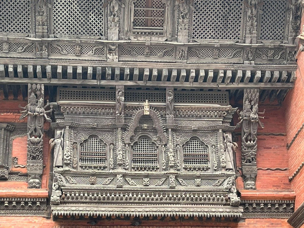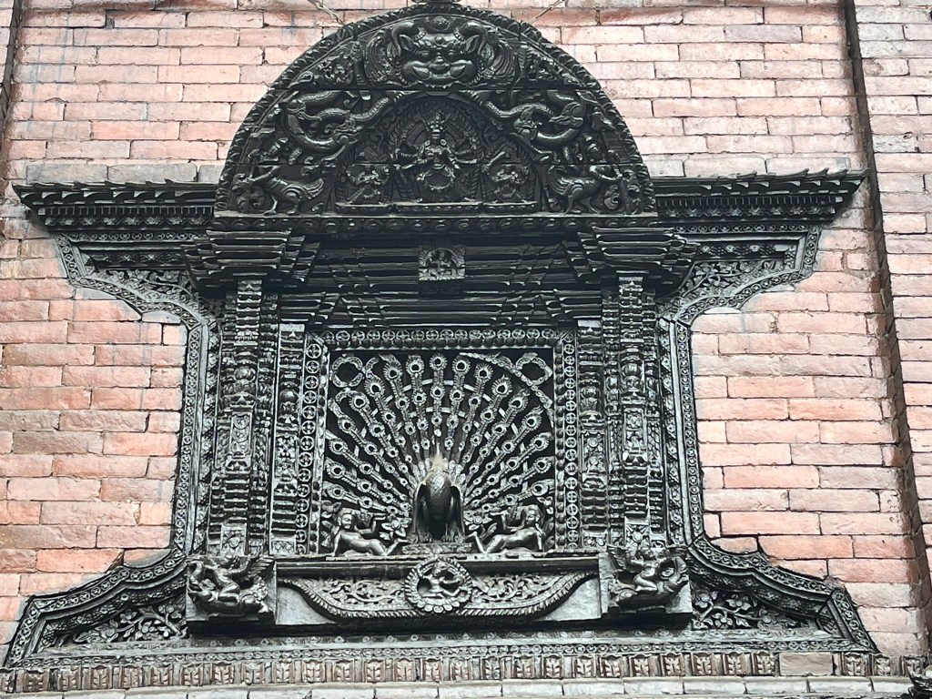 Next up was Kathmandu Durbar Square. The word durbar translates to palace, so what you are seeing when you visit is much more than a square, it is an entire palace complex and surrounding temples. I was really surprised at the size of the area and just how grand the whole place felt. In fact I thought we were in the main square and was very impressed, when I realised we were still in one of the side squares off the main palace area. The area was the seat of power and central to the political and ceremonial life of Kathmandu’s rulers. There are temples, courtyards, shrines, palaces, statues everywhere all in the traditional Newar architectural style, including incredible wood-carvings, especially the windows. It is much bigger than I imagined and you need at least an hour to enjoy wandering amongst and through all the different buildings. My favourite part was getting up close to the detailed wood-carving, particularly the peacocks which I had read were a special feature.