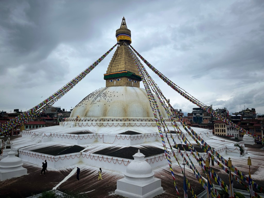 Our lunch stop was Boudhanath Stupa in northeast Kathmandu, one of the largest spherical stupas in the world, with a diameter of 120m and a major center for Tibetan Buddhists in Nepal. The stupa was built around the 14th century (although legend says there has been a stupa of some sort here since the 5th century) as it stood on an ancient caravan route linking Tibet with Kathmandu Valley and India. Merchants, pilgrims and travelers would rest here (back then the stupa was not in the middle of the city like it is today) and perform koras around the stupa, praying for safe onward journeys.